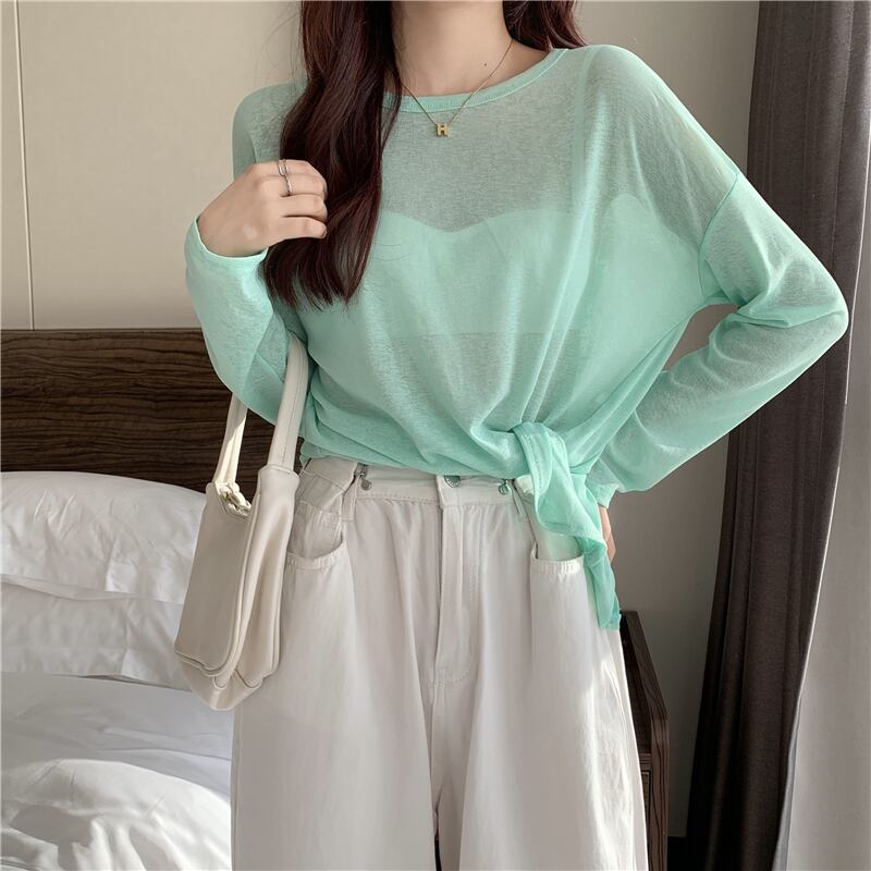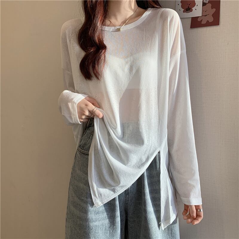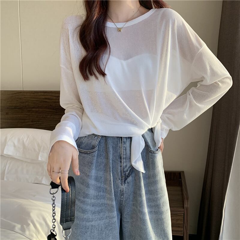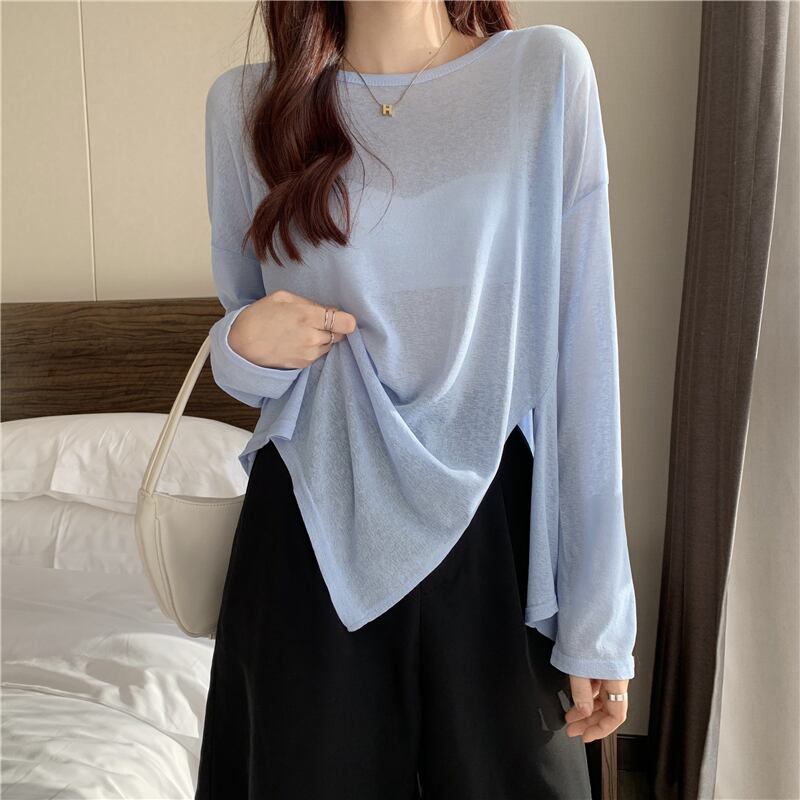 Tシャツシャツ 夏服薄手ルーズブラウス トップス NEW ロング 夏物 シルク 長袖 コーデ Marchs55087970616