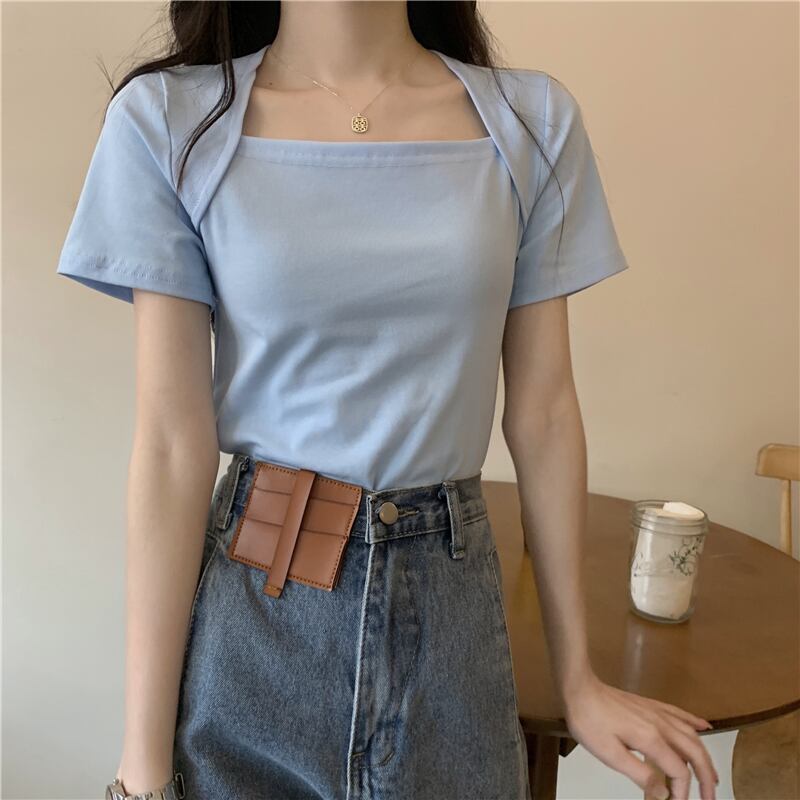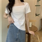 カラーTシャツ夏服トップス 大人ガーリー スウィート キュート カジュアル 夏物 スクウェア コーデ Marchs5321298938