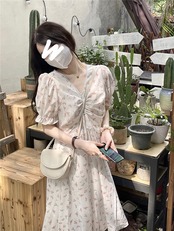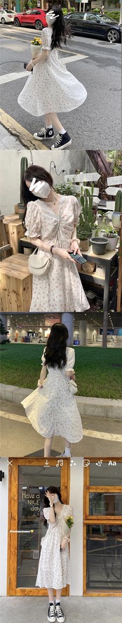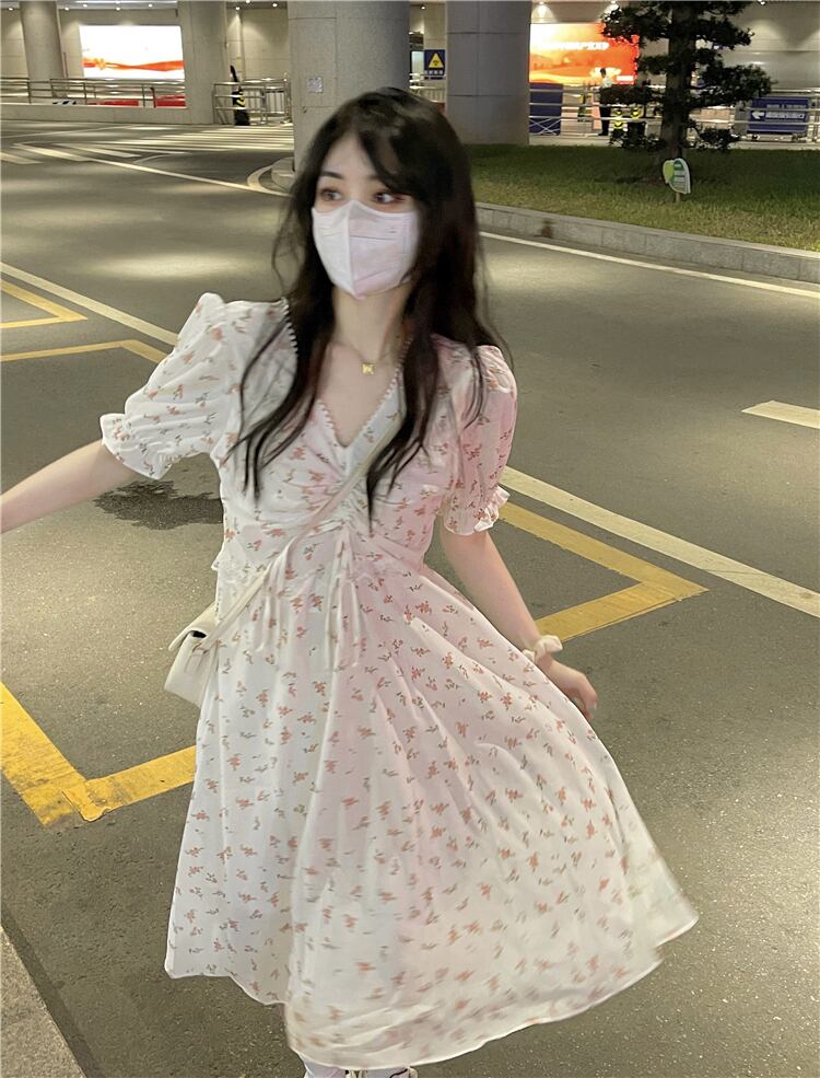 ワンピース夏服フローラルスカート ウェスト 大人ガーリー スウィート キュート カジュアル 夏物 花柄 ウエスト コーデ Marchs94483311955