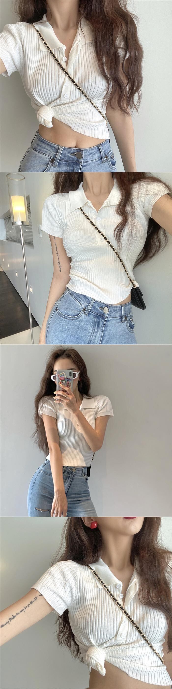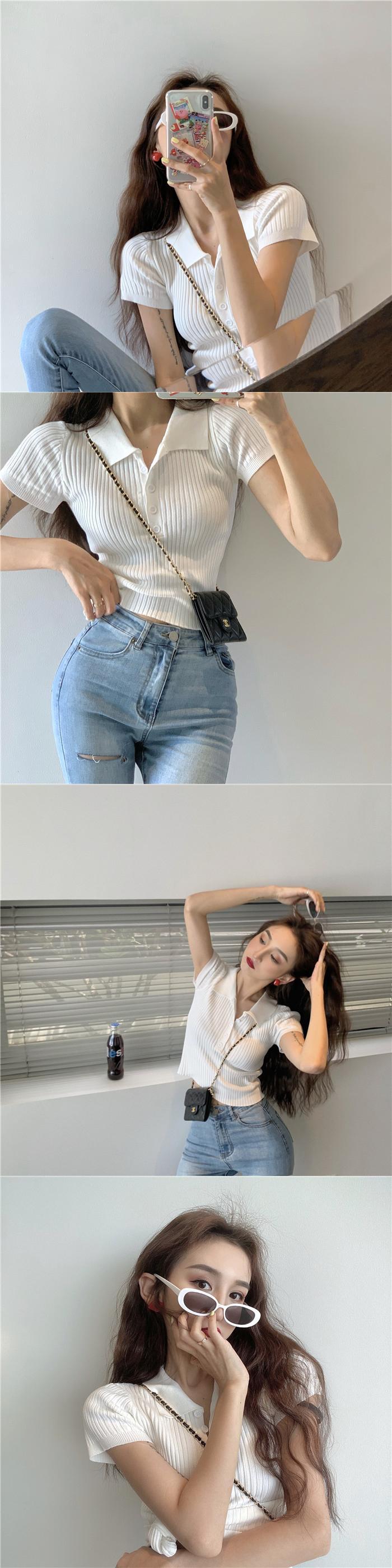 ショートカラーセーター 夏服トップス 夏物 シルク ウエスト コーデ Marchs56211512548