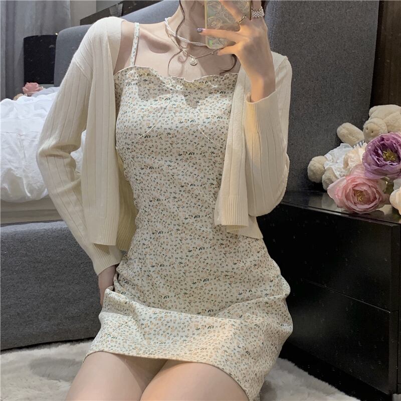 色:アプリコットドレス,アプリコットカーディガン,ブルーカーディガン,青いスカート