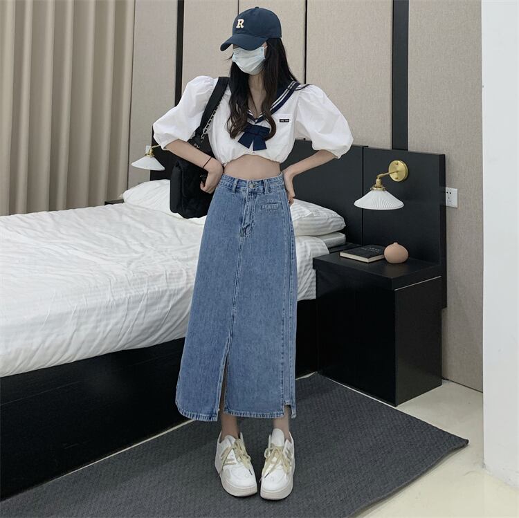Aラインスカート 夏服ハイウェストウェストスリム 夏物 ウエスト ミドル丈 コーデ Marchs36002925901