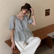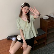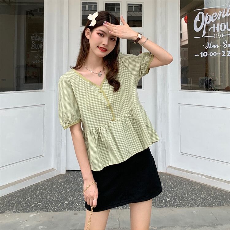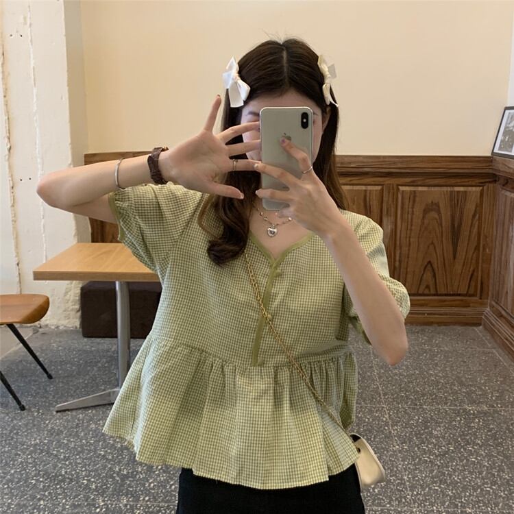 夏服格子柄シャツ トップス スタイルTシャツ 大人ガーリー スウィート キュート カジュアル ふわふわ 夏物 コーデ Marchs93009897649