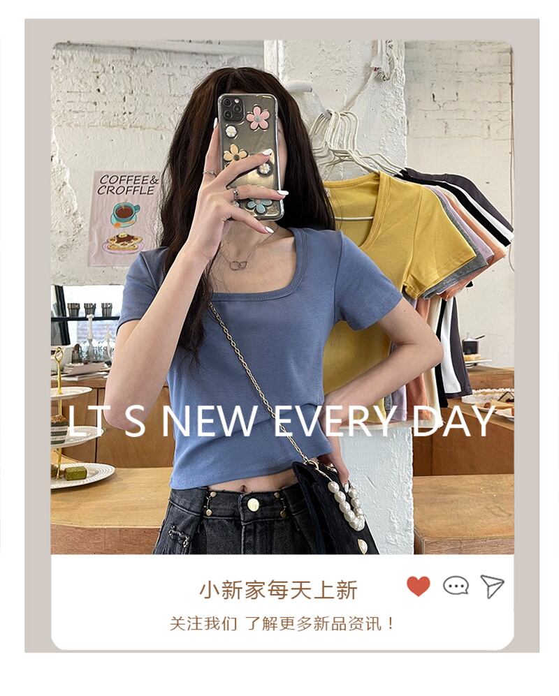 ブルーショートTシャツレディースNEW夏服カラートップス 夏物 スクウェア コーデ Marchs29726096611