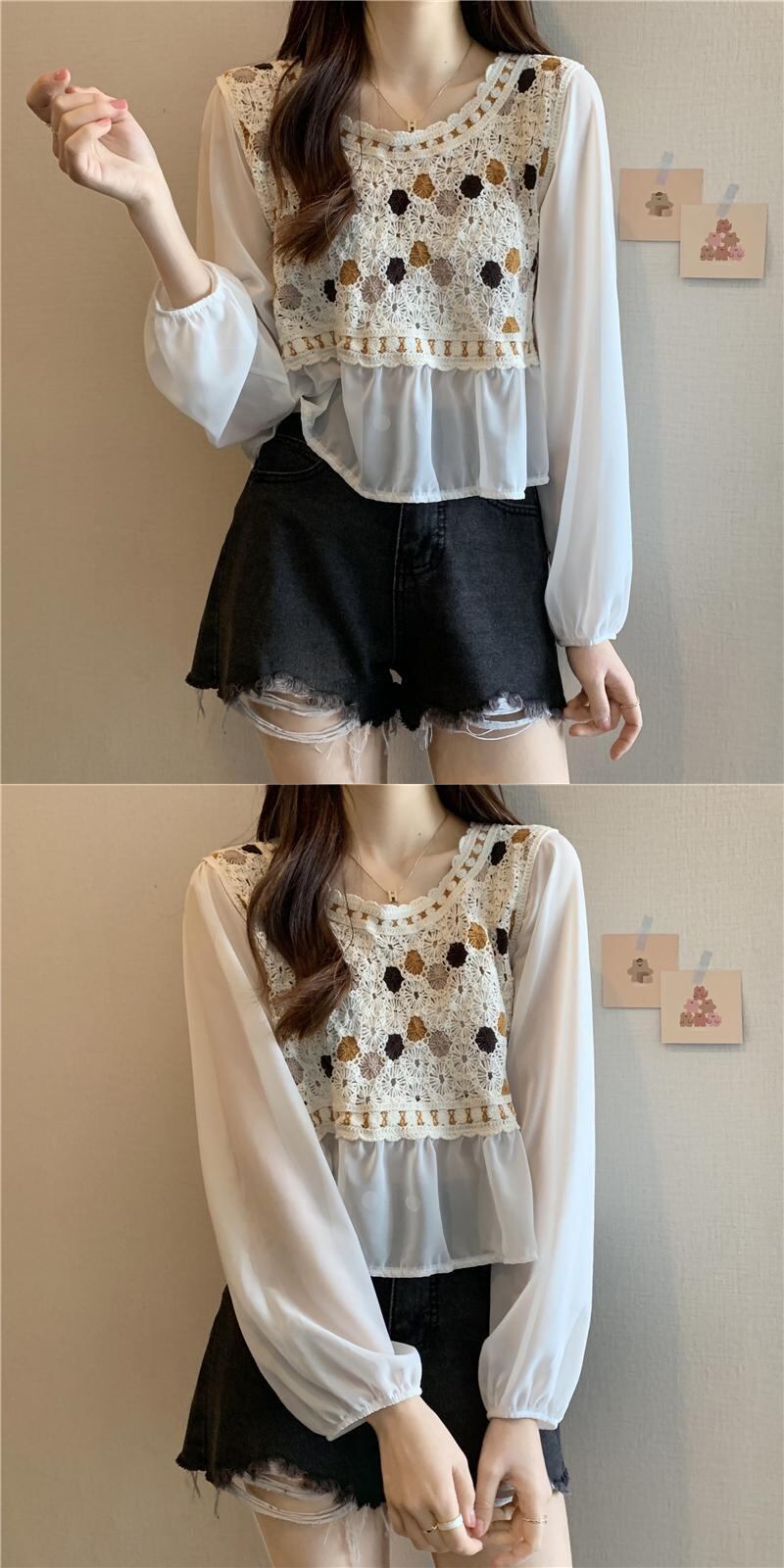 レースシフォンシャツ夏服薄手トップス 夏物 コーデ Marchs61983880612
