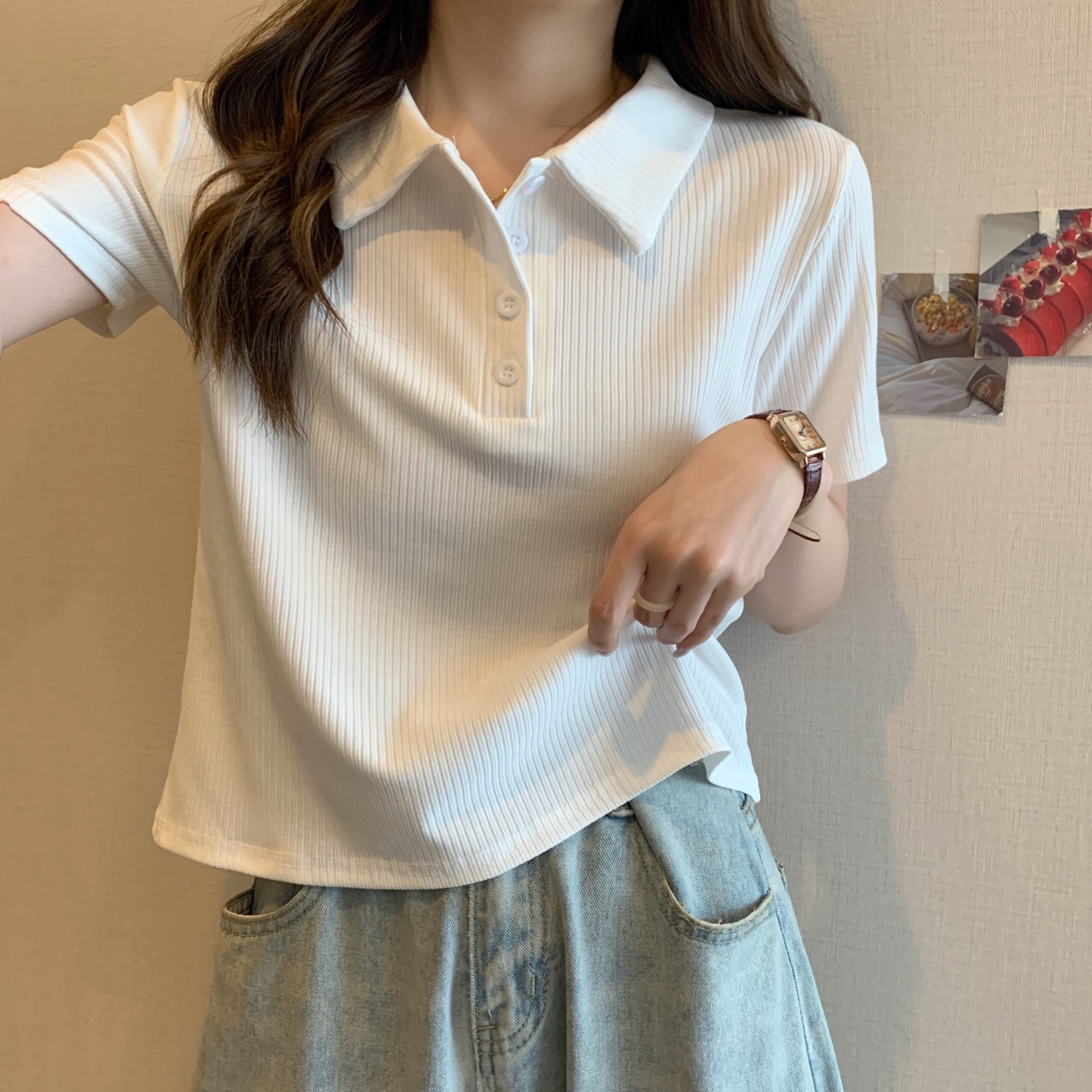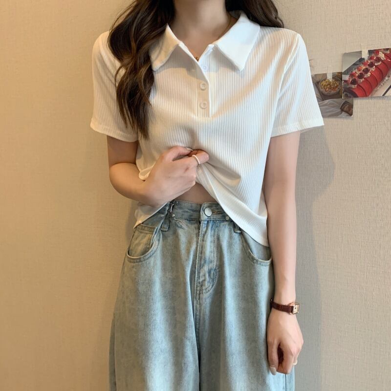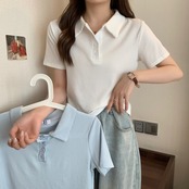 韓国ファッションスリムカラーTシャツ夏服ニットトップス 大きめサイズ 夏物 シルク スタイル コーデ Marchs19604013388
