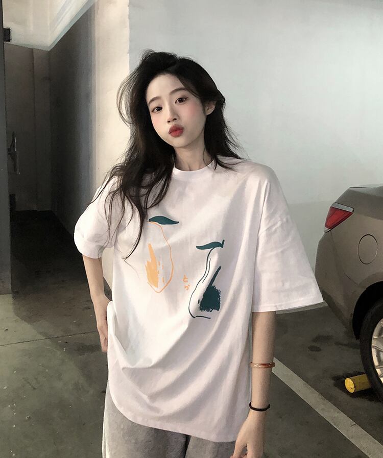 ラウンドネックプリントブラックTシャツ夏服韓国ファッションルーズスタイルトップス 夏物 Oネック コーデ Marchs28710047290