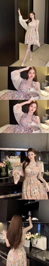フローラルレースシフォンレディーストップス 大人ガーリー スウィート キュート カジュアル 花柄 ピュア コーデ Marchs42410996084
