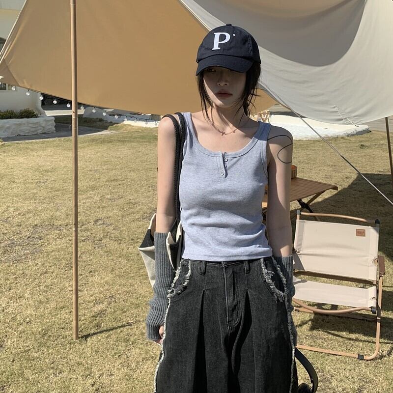 夏服スリムフィットノースリーブゆったりトップス 夏物 コーデ Marchs89079089208