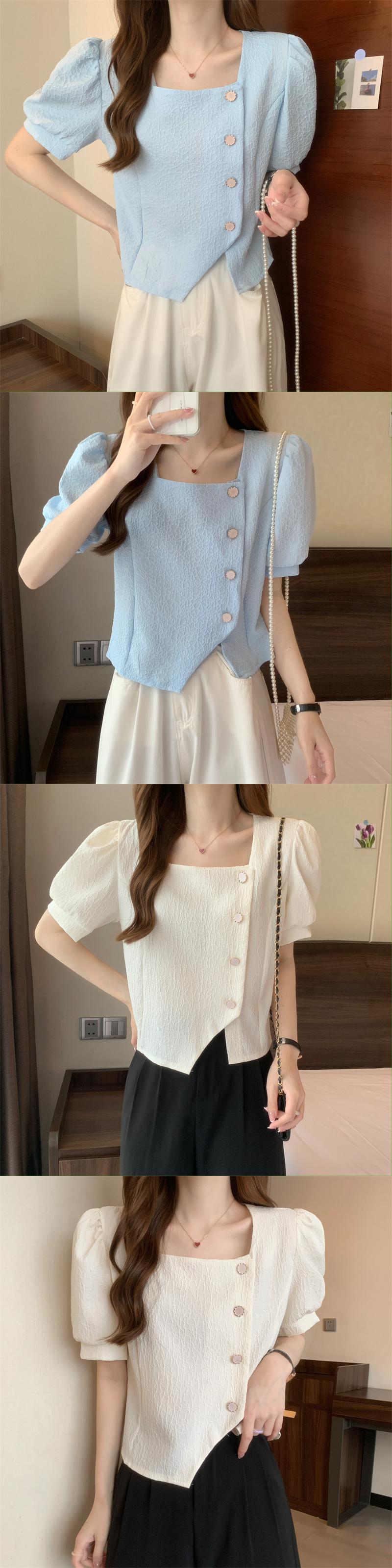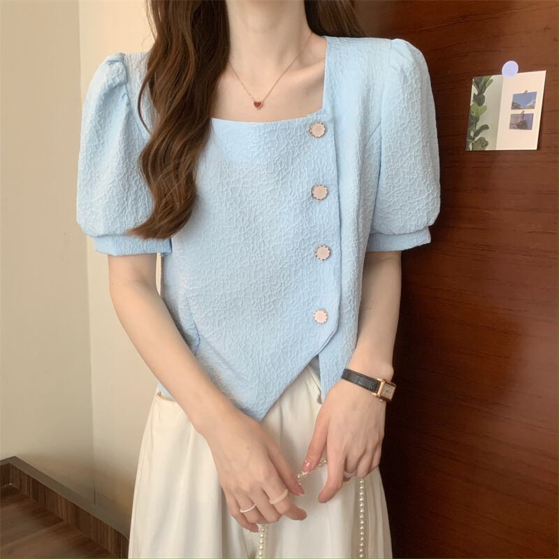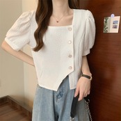 スリーブカラーショートトップス スタイル夏服半袖シャツ ハーフスリーブ 夏物 スクウェア パフスリーブ コーデ Marchs69664528870