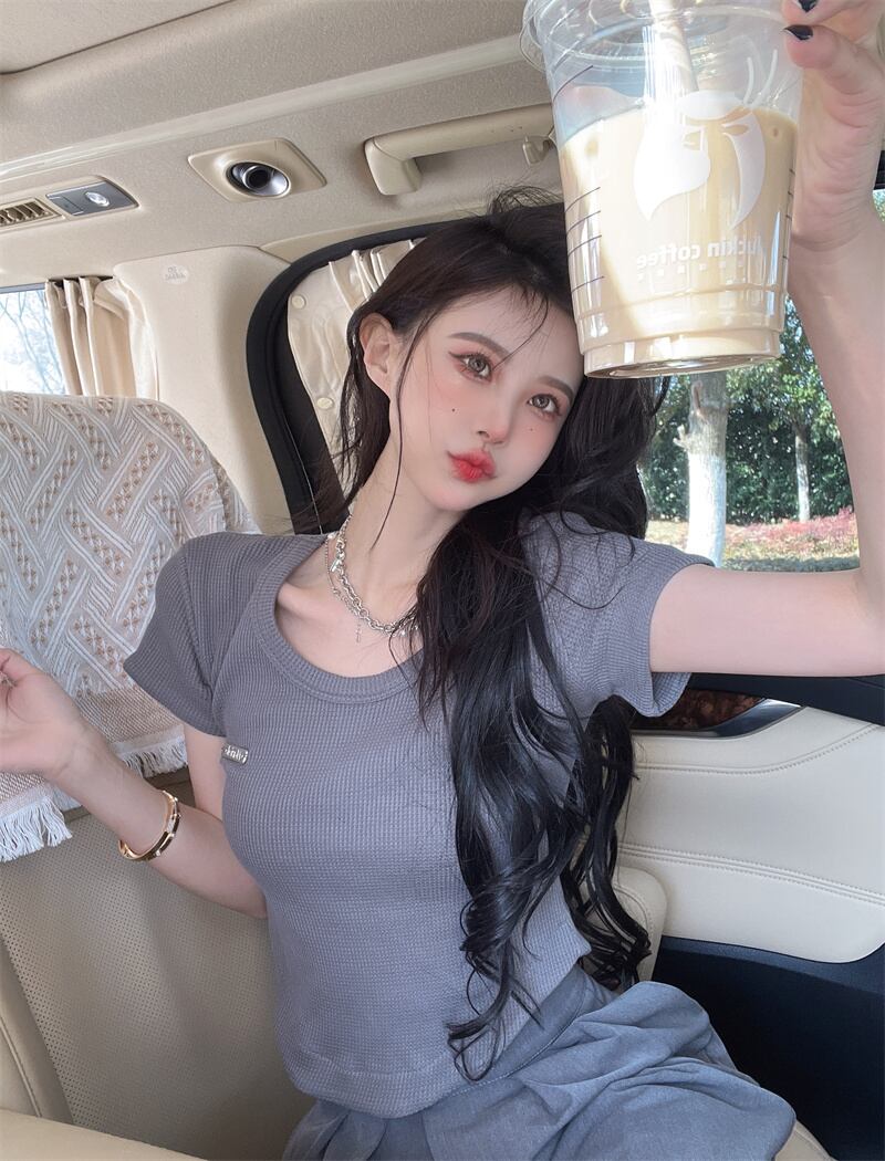 ショートTシャツ夏服スリムトップス 夏物 コーデ Marchs1677707235