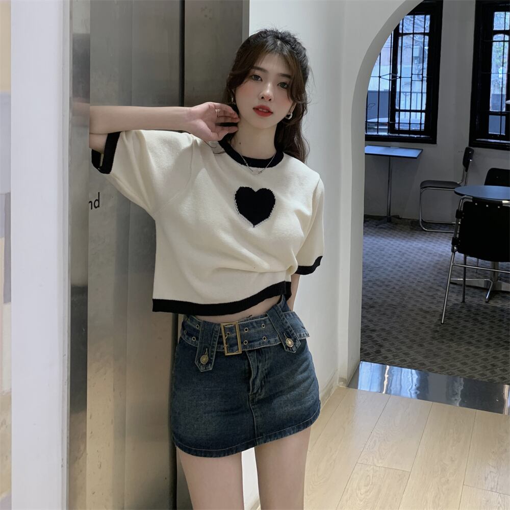 ジャカードニットショートTシャツ夏服ハイウェストウェストクロップトップ トップス NEW 夏物 ウエスト コーデ Marchs56319848339