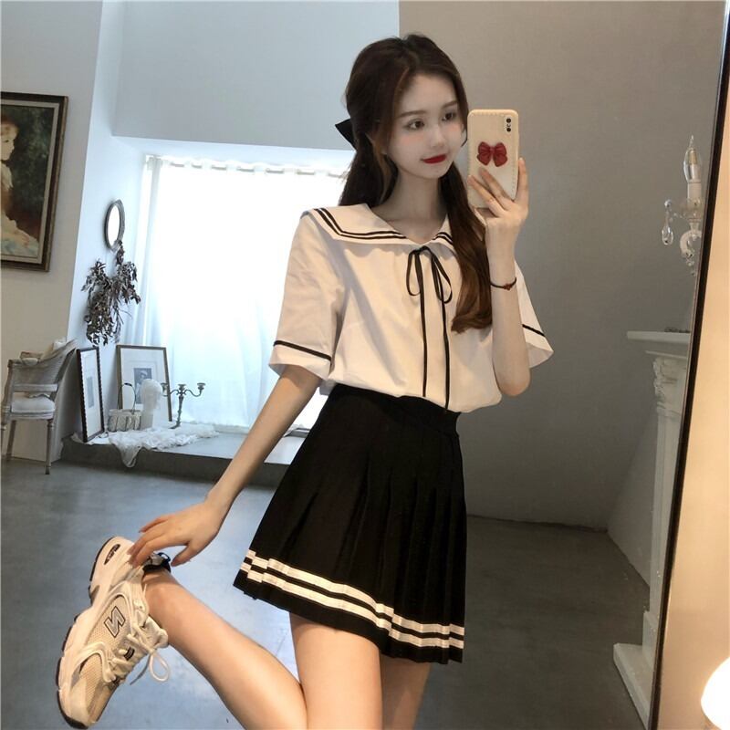 夏服ネイビーカラーシャツ プリーツスカート 大人ガーリー スウィート キュート カジュアル 夏物 コーデ Marchs30562452669