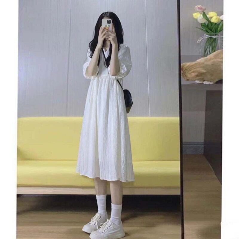 ロングスカート ウェスト薄手ホワイトワンピース夏服 大人ガーリー スウィート キュート カジュアル 夏物 ウエスト コーデ Marchs68242124294