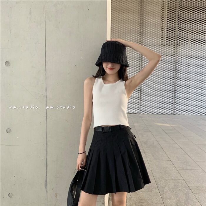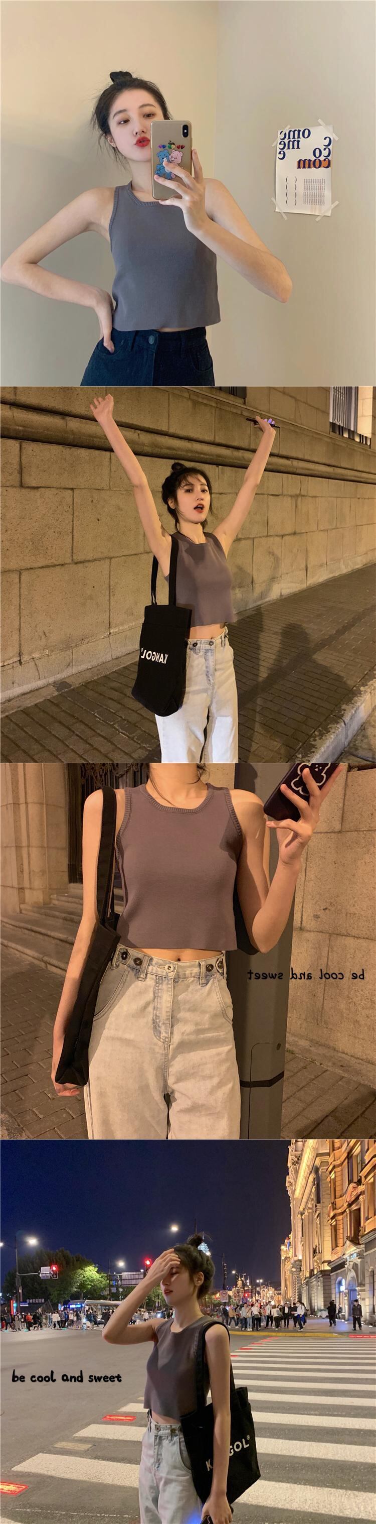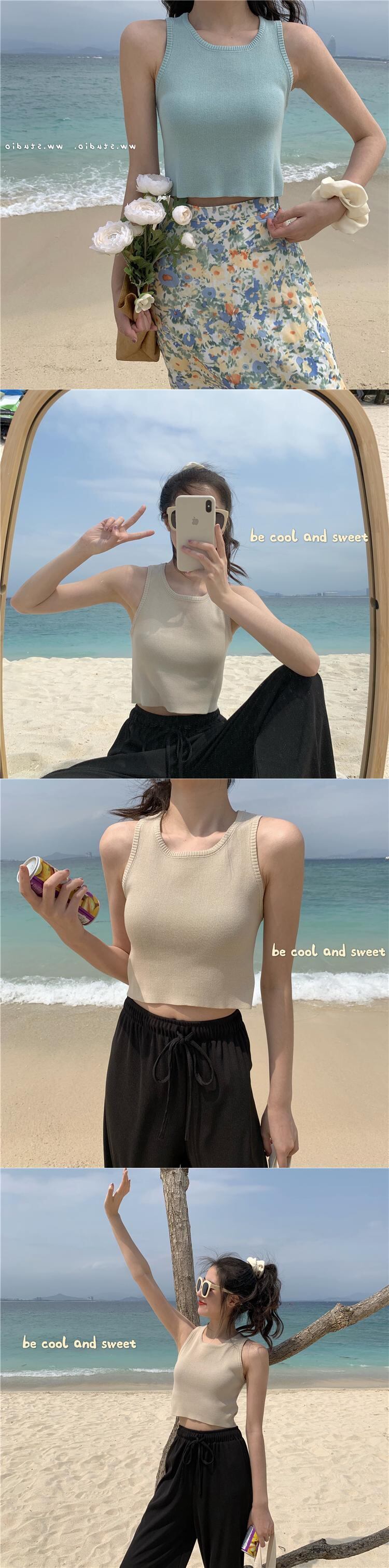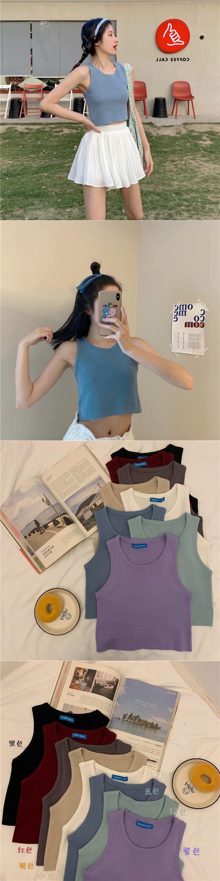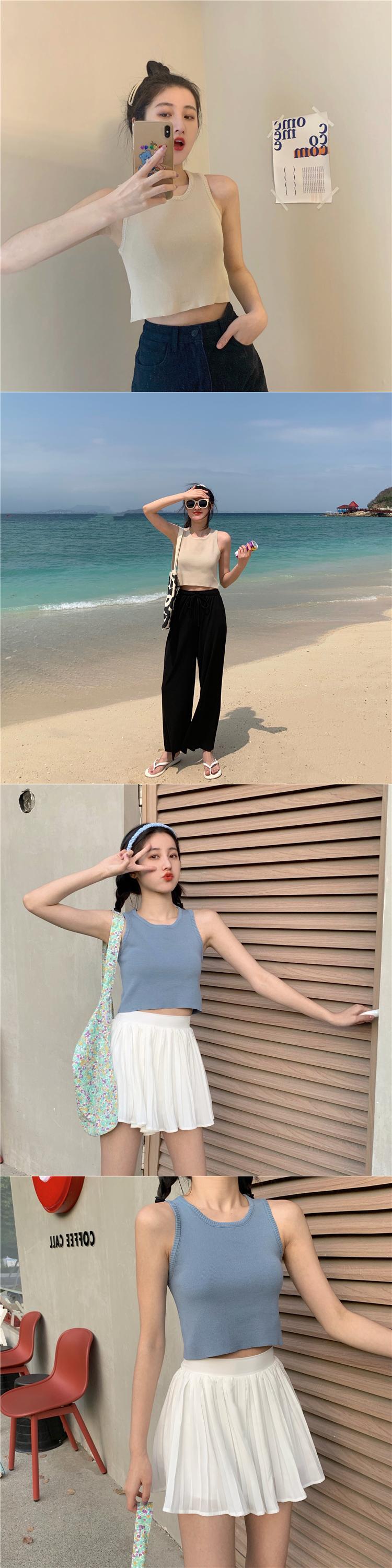 夏服韓国ファッションスリムカジュアルノースリーブニットベーシックトップス レディース 夏物 スタイル コーデ Marchs70820636501