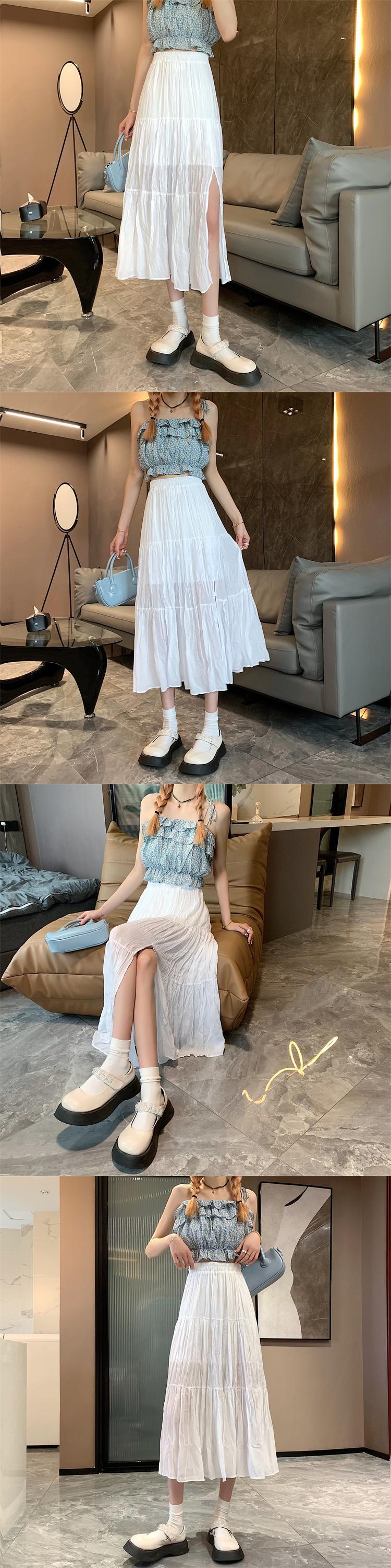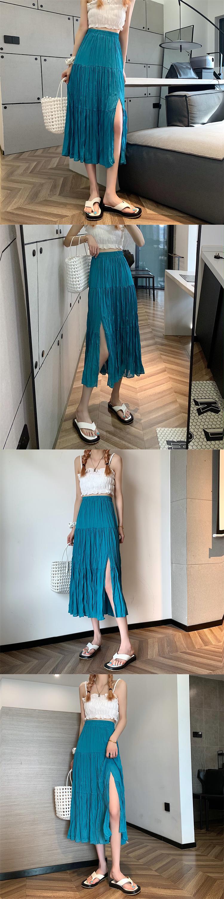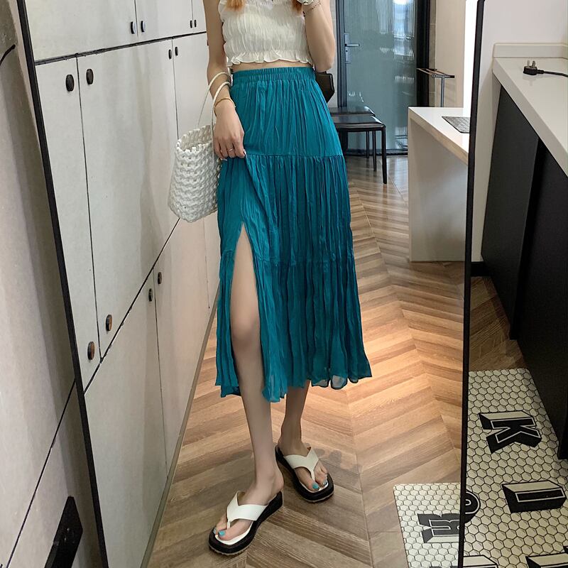 シフォンスカート 夏服ハイウェストウェストAラインプリーツスタイル 夏物 ウエスト ミドル丈 コーデ Marchs97051747845
