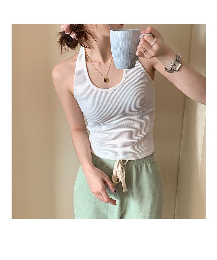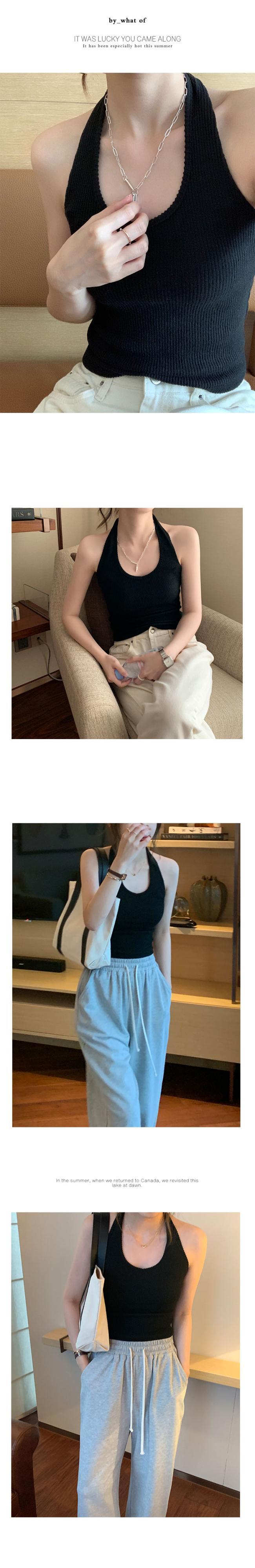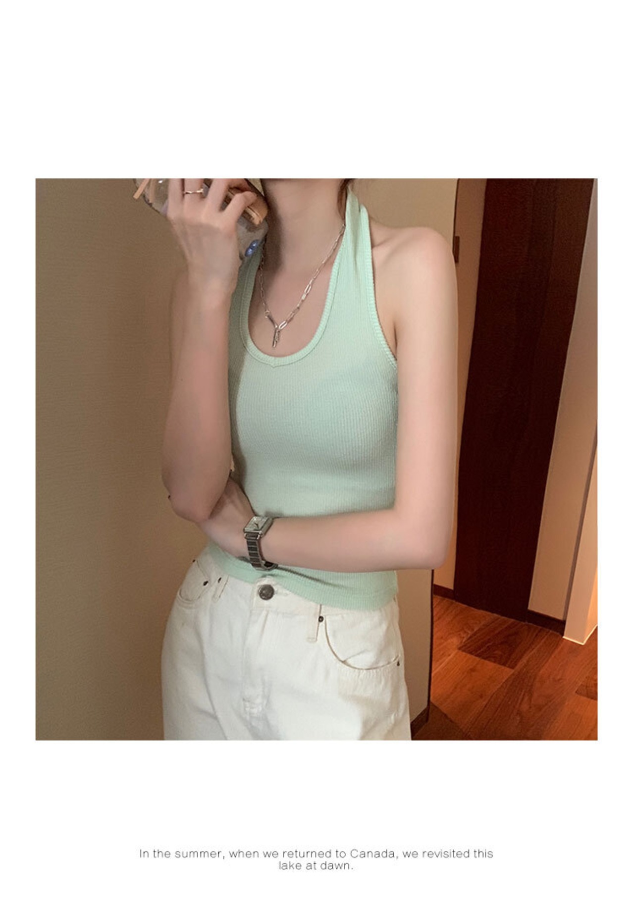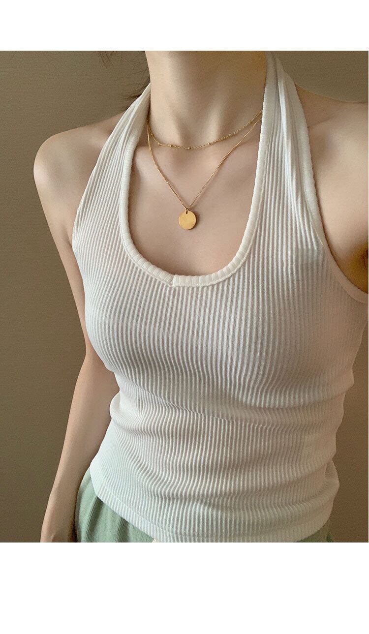 夏服スタイルスリムフィット薄手ホルターニットストレッチゆったりトップス エラスティック 伸縮 夏物 コーデ Marchs17916106053