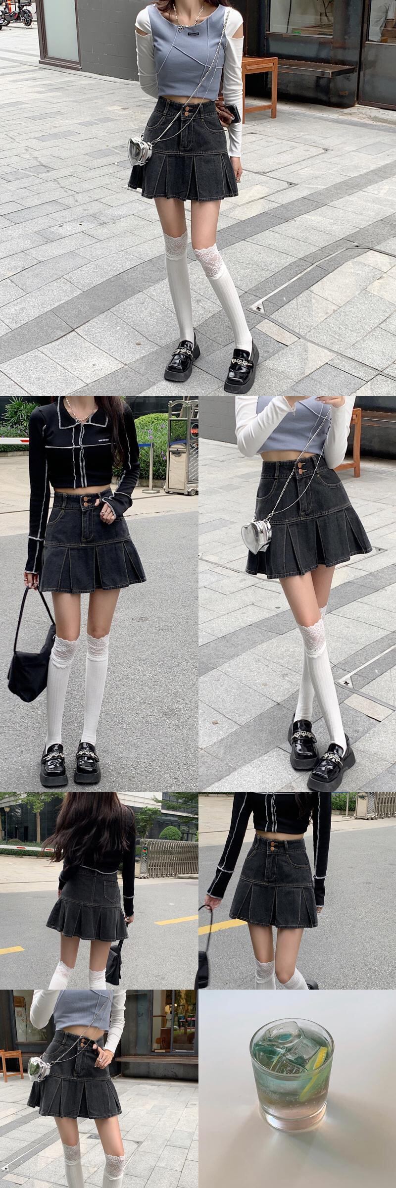 プリーツスカート 夏服ハイウェストウェストAラインショート 夏物 ウエスト コーデ Marchs51107319281