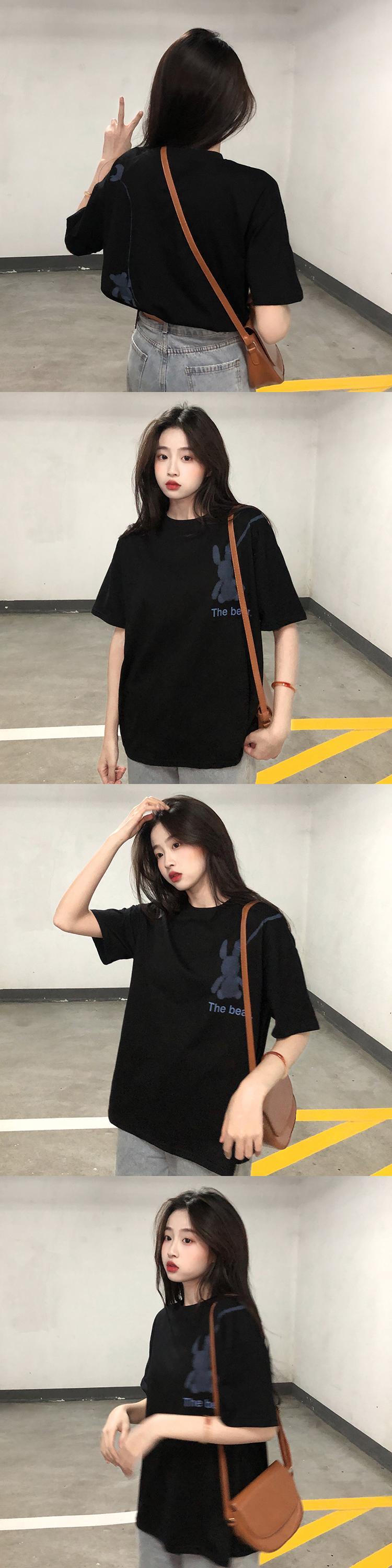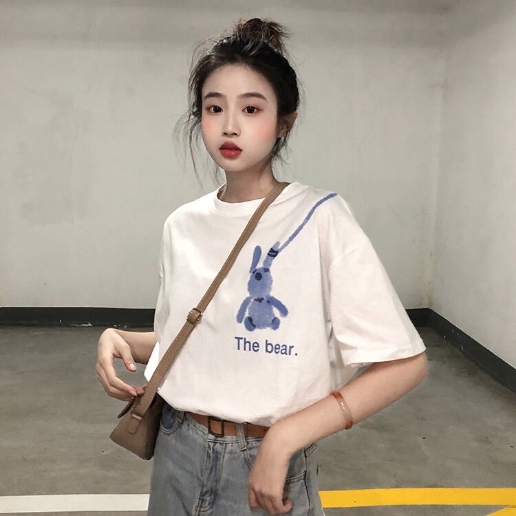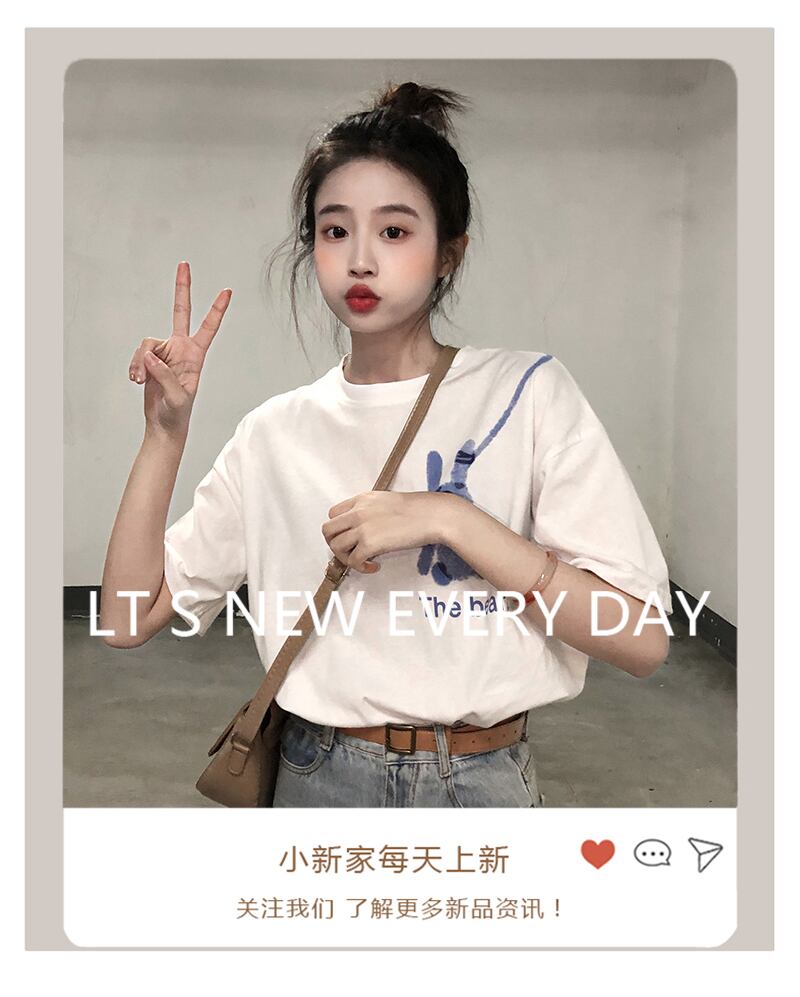 ホワイトプリント柄Tシャツ夏服ルーズラウンドネックトップス NEW 夏物 Oネック コーデ Marchs80061324040