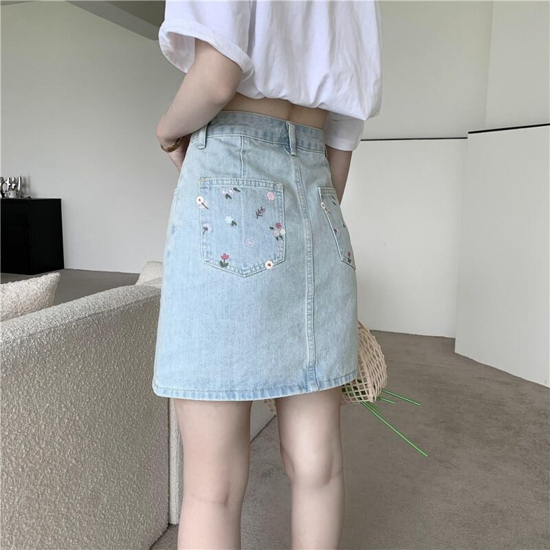ブルーハイウェストウェストスカート 夏服Aラインショートフローラルスプリング秋物 春物 夏物 オータム 花柄 ウエスト コーデ Marchs78865619866
