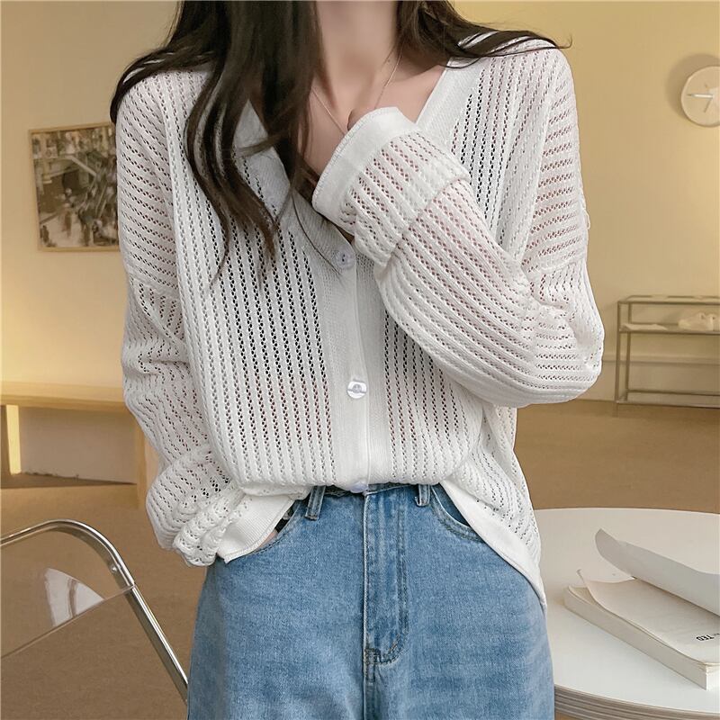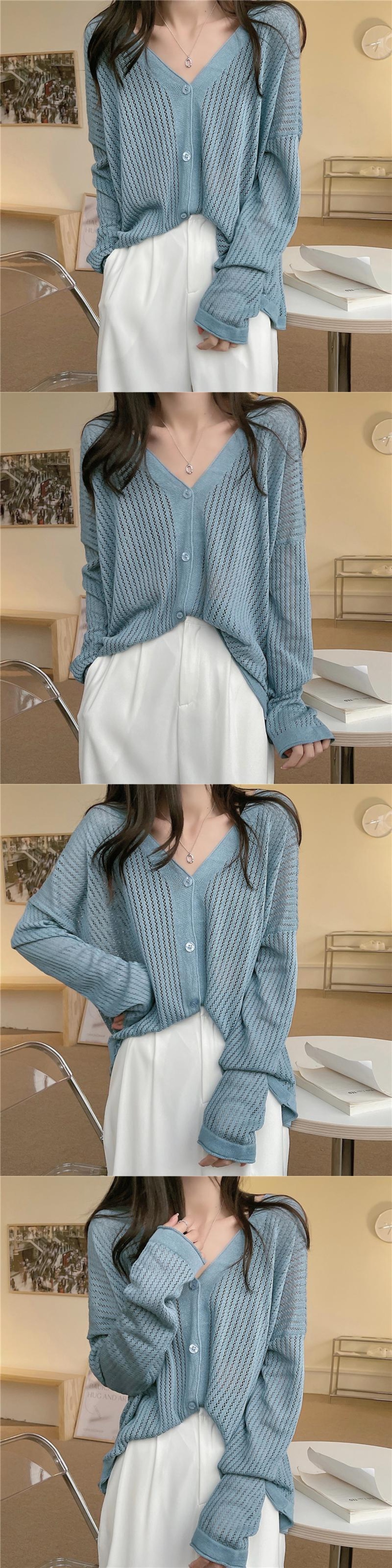Vネックニットカーディガン夏服シャツ 薄手トップス 夏物 シルク コーデ Marchs72762037199