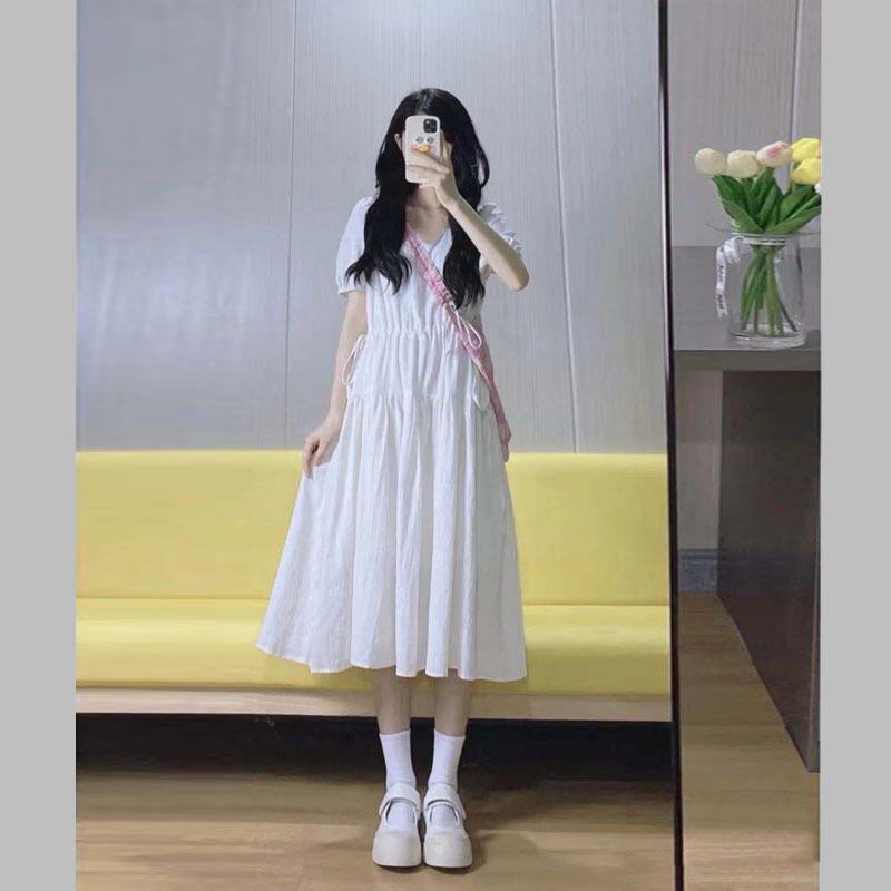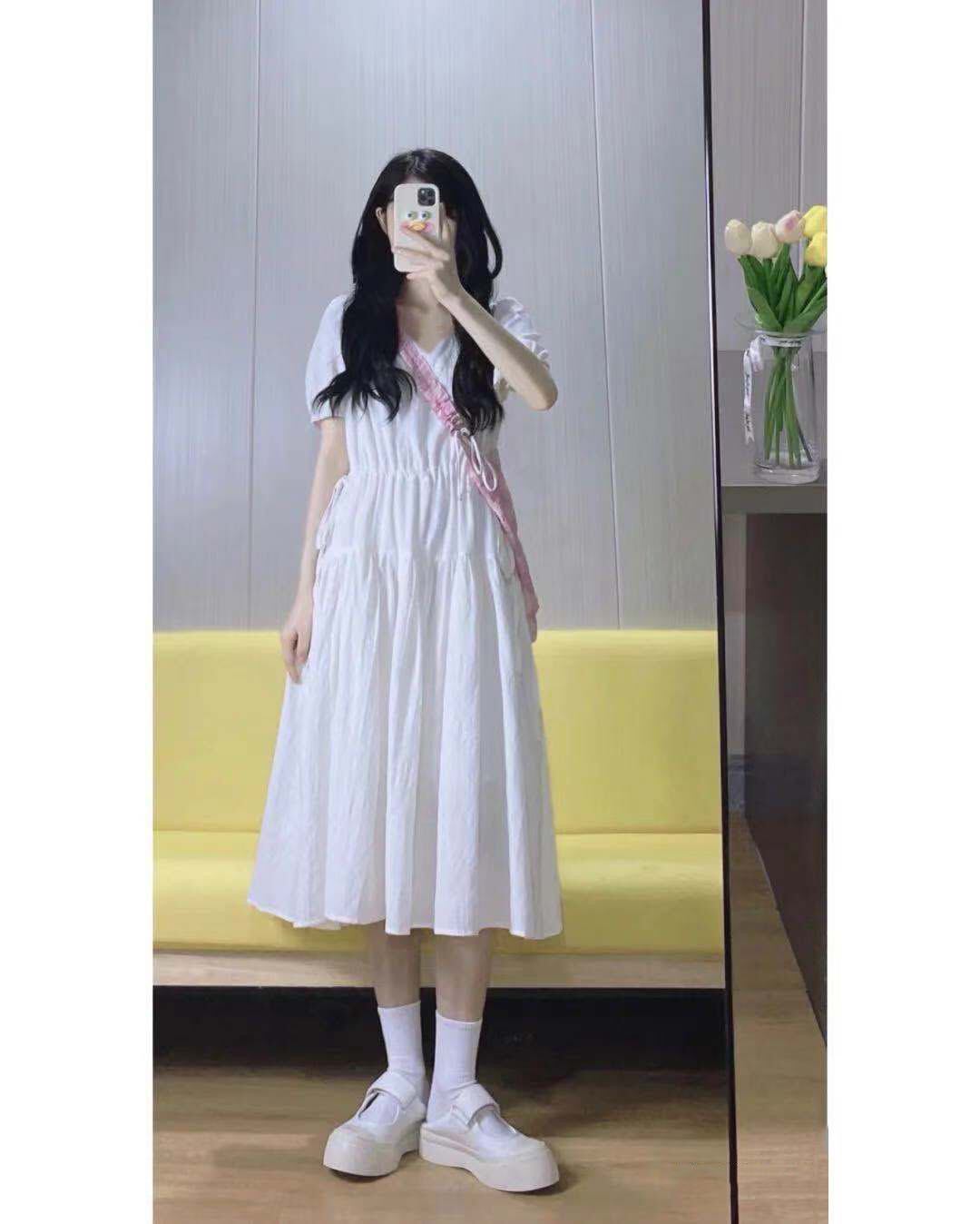 ホワイトロングワンピース夏服韓国ファッションスタイル 大人ガーリー スウィート キュート カジュアル 夏物 コーデ Marchs815082259