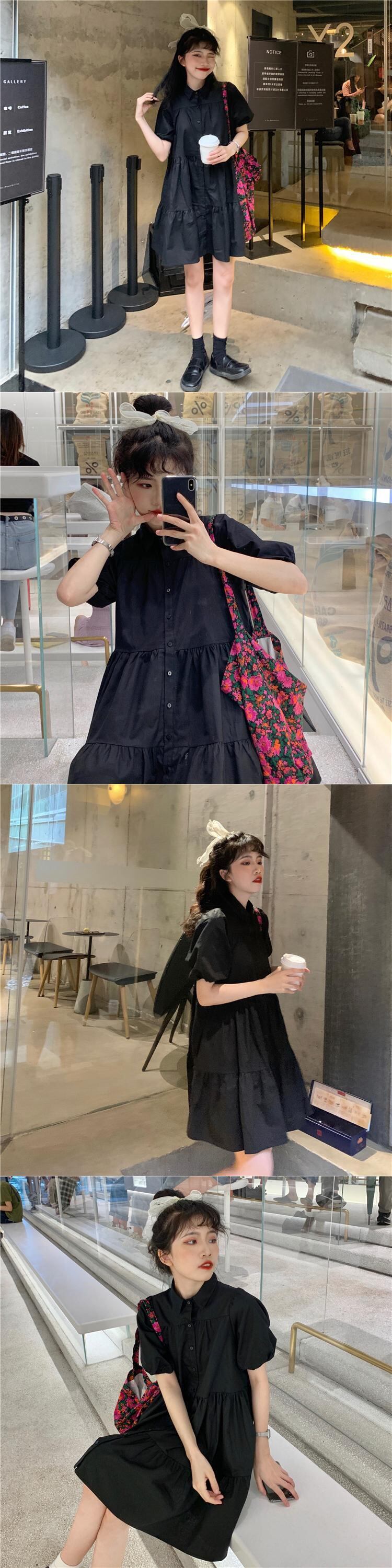 ホワイトカラー半袖スリーブシャツ ワンピース夏服ルーズスカート ショート ハーフスリーブ 大人ガーリー スウィート キュート カジュアル 夏物 コーデ Marchs14154510407