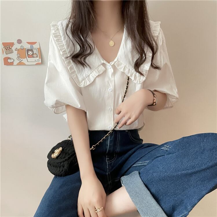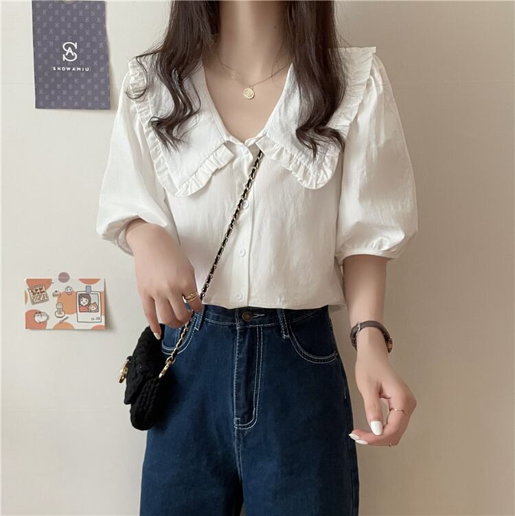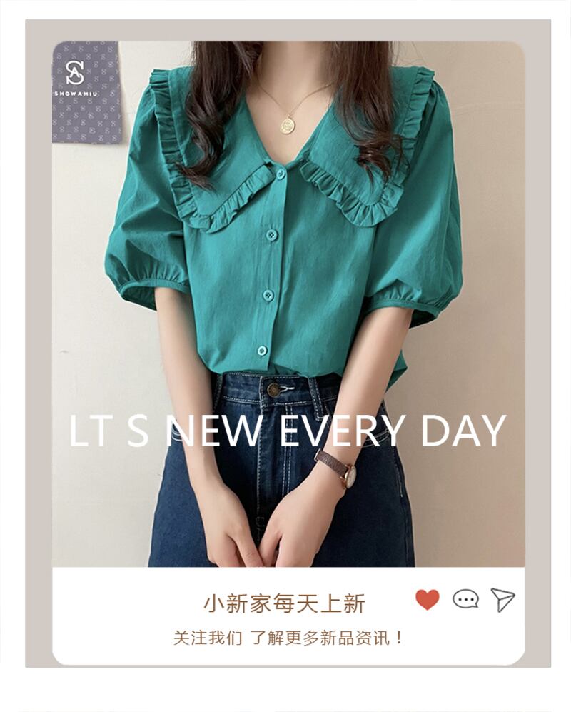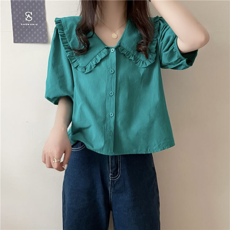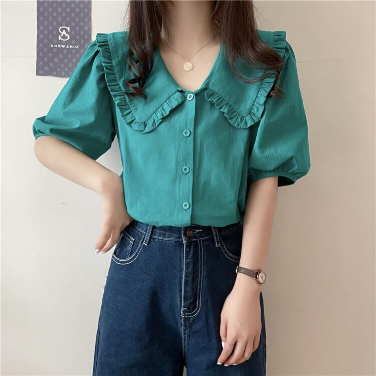 グリーンカラースリーブシャツ スプリング秋物夏服トップス 春物 夏物 オータム コーデ Marchs53700604224