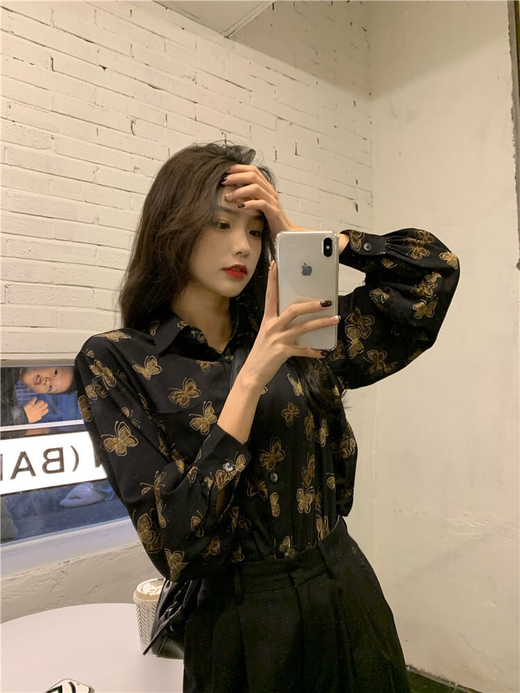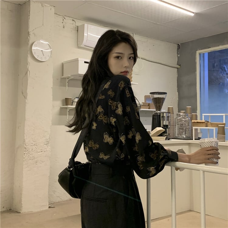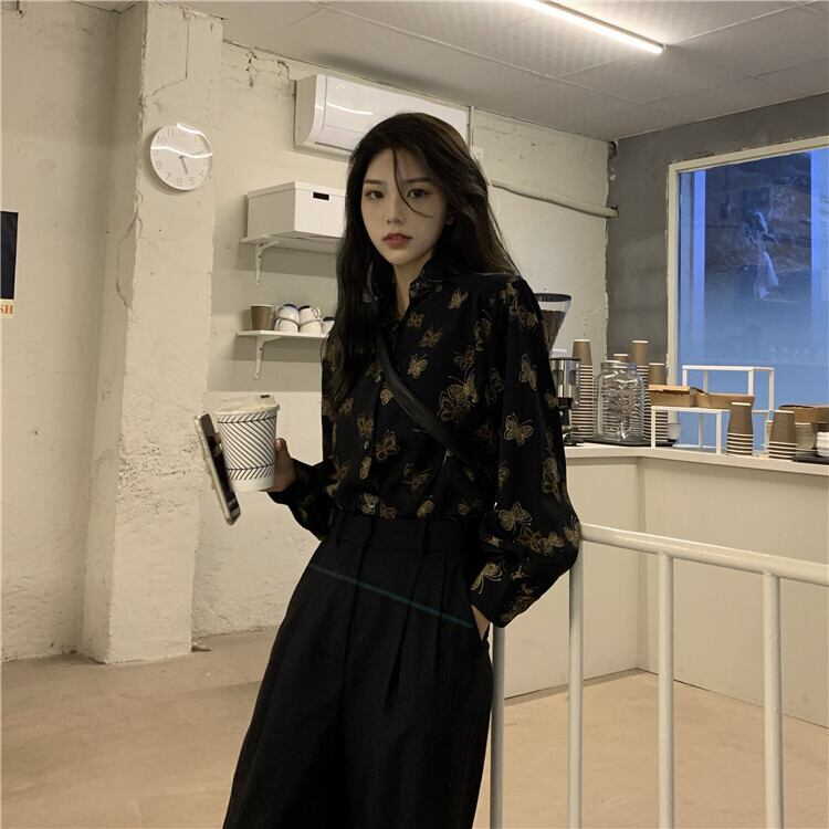スタンダードプリントシャツ スプリングトップス レトロ 春物 コーデ Marchs42708259940