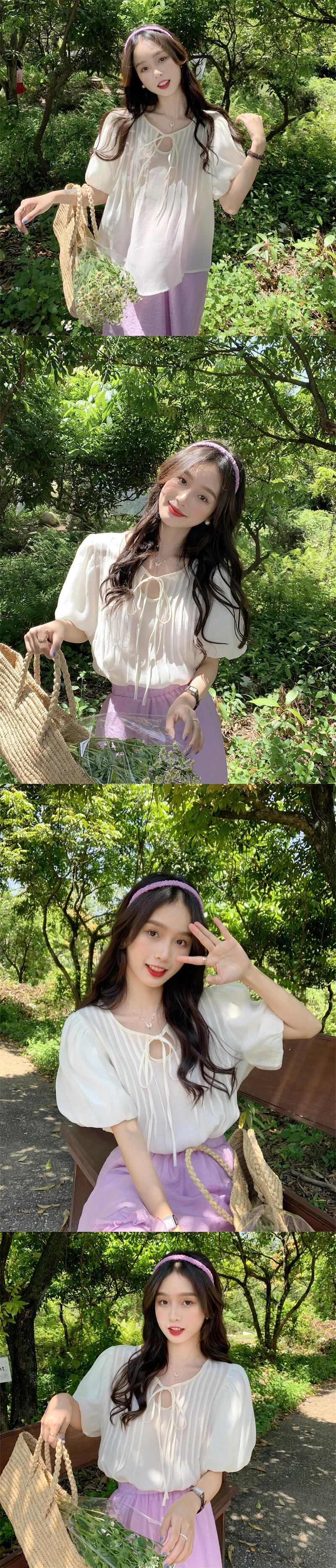 プリーツレースシャツ 夏服ホワイトシフォントップス 大人ガーリー スウィート キュート カジュアル 夏物 コーデ Marchs6412111748