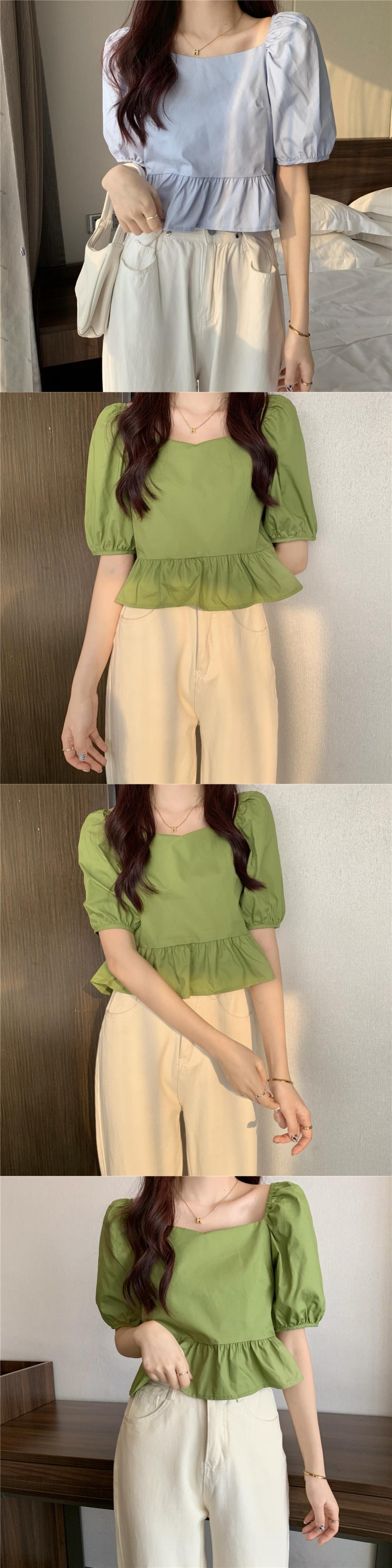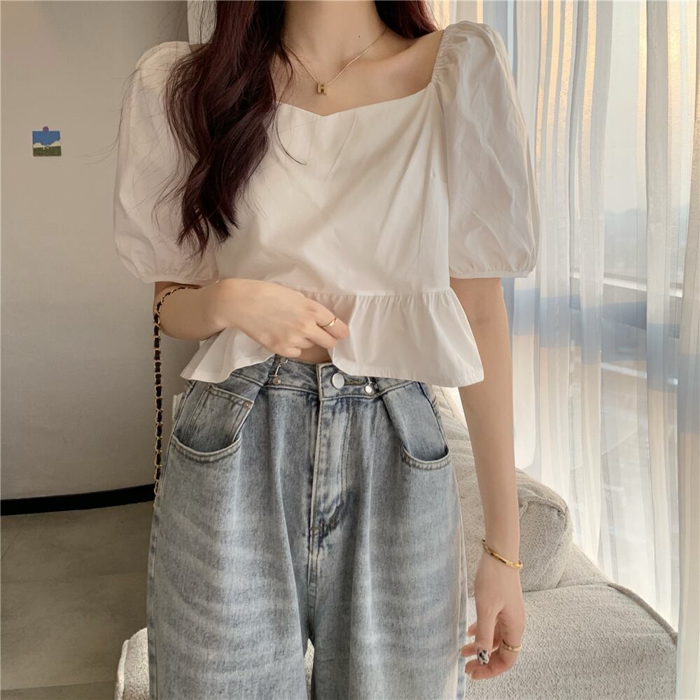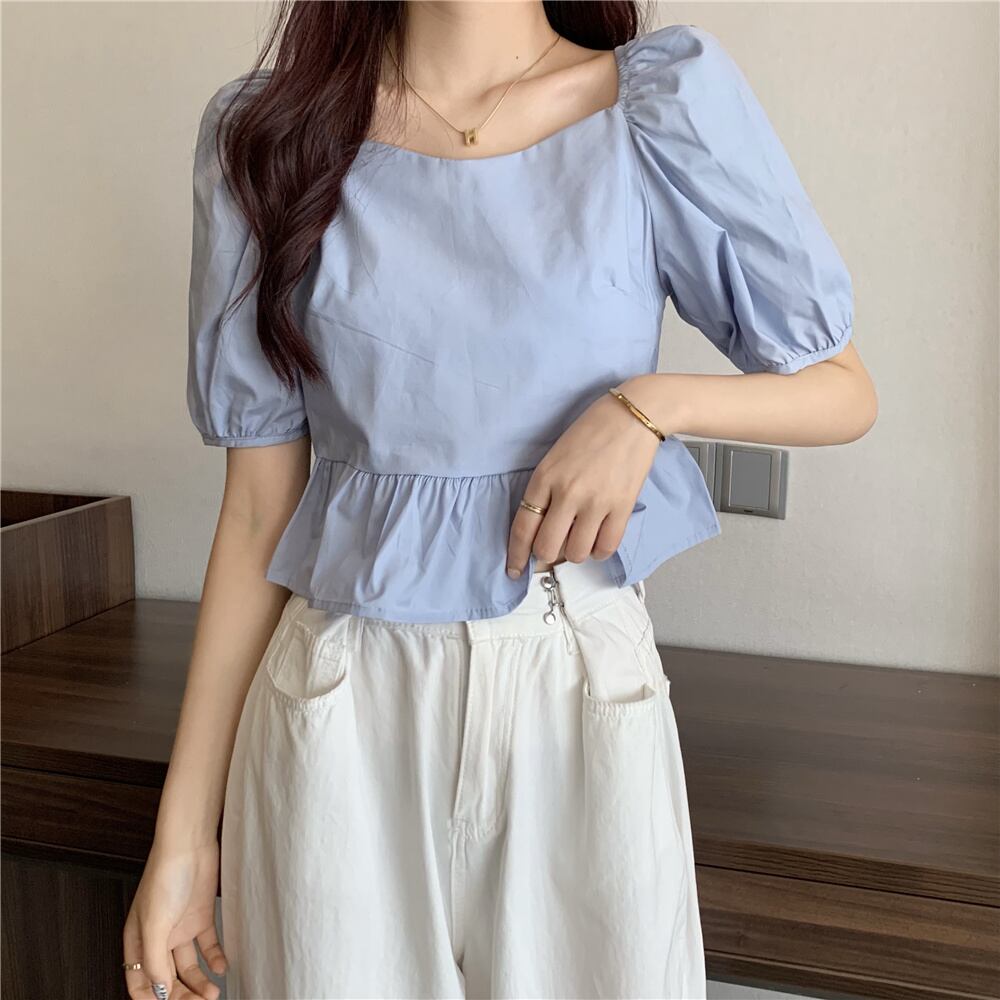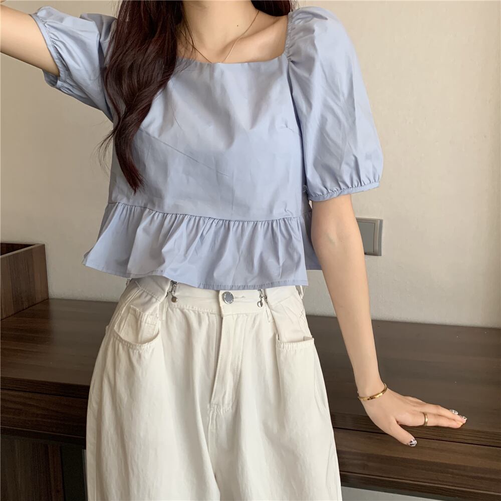 ショートシャツ 夏服カラーブラウス トップス 夏物 スクウェア パフスリーブ コーデ Marchs67764284135