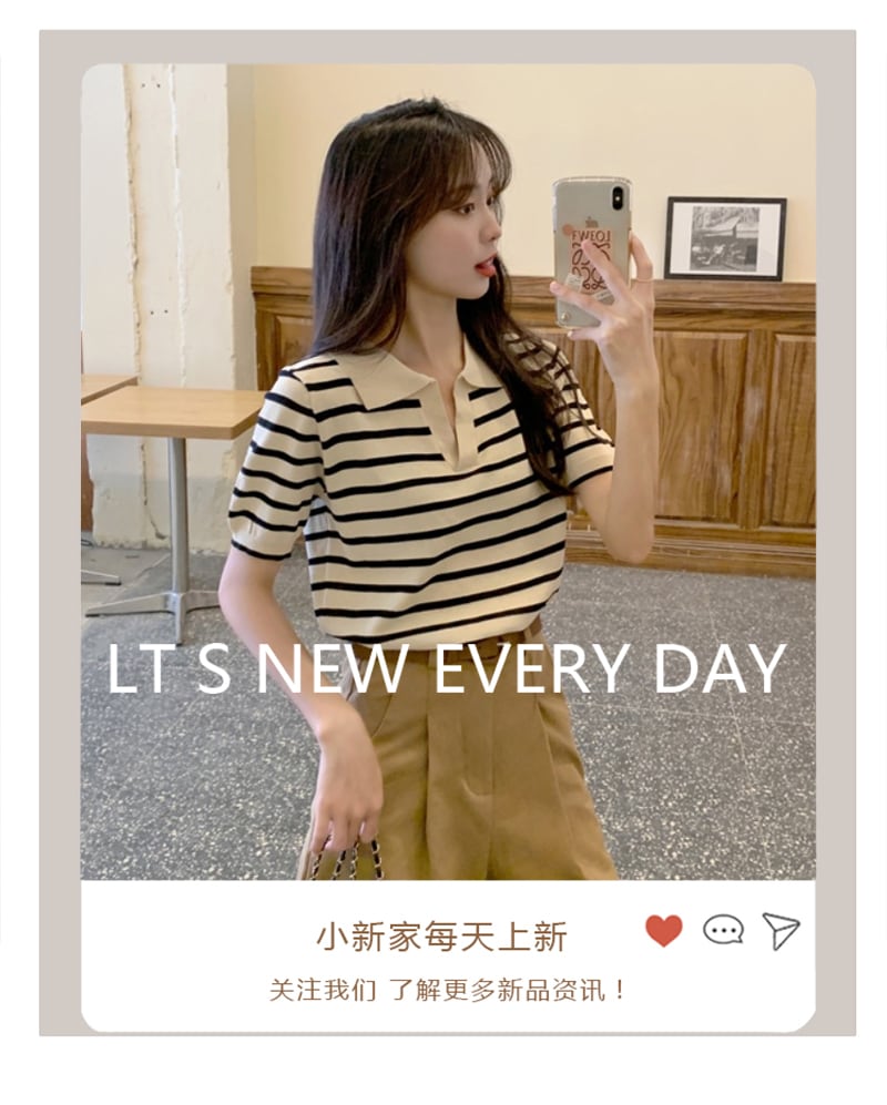 夏服薄手ストライプシャツ ルーズTシャツニットトップス 夏物 コーデ Marchs96245468717