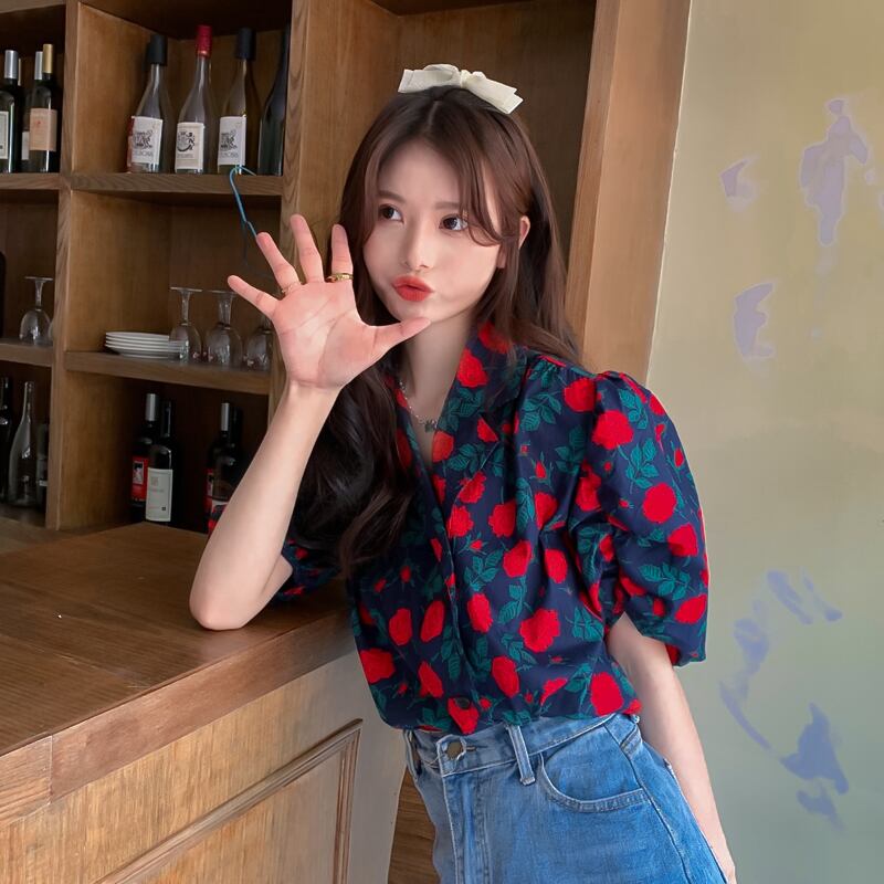 スリーブフローラルシャツ 夏服スタンダードトップス レトロ 夏物 花柄 コーデ Marchs49134260525