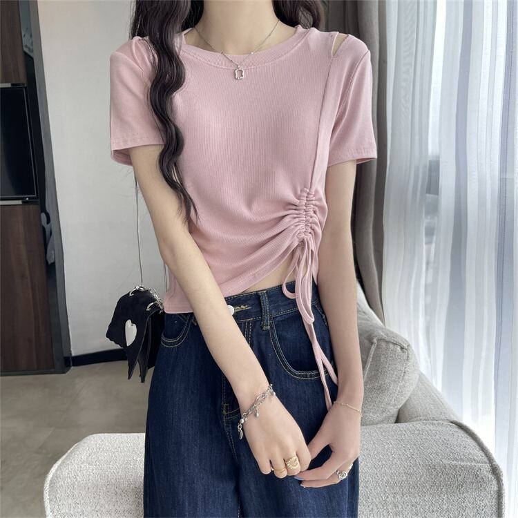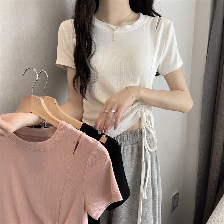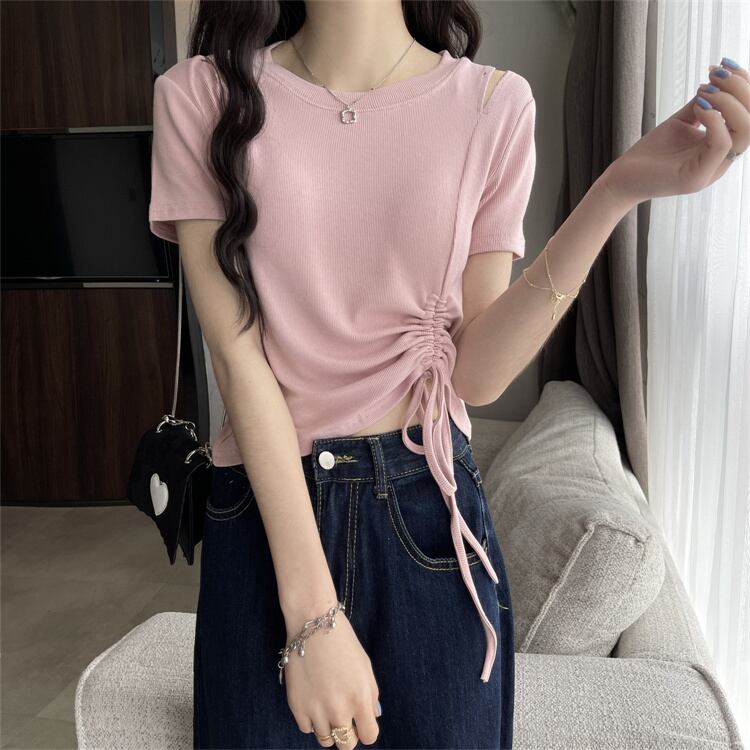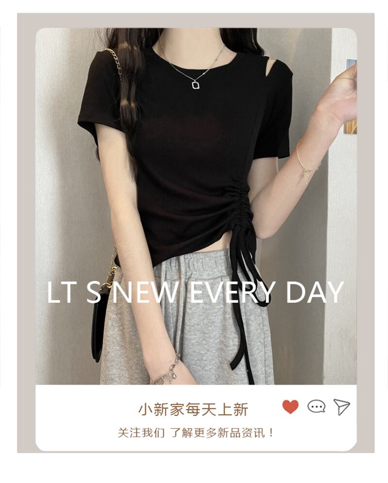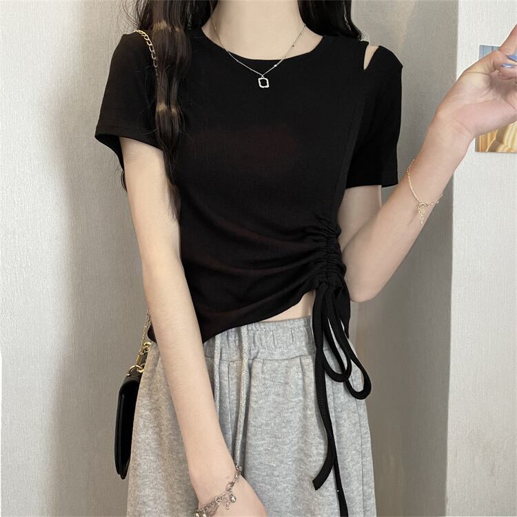 夏服ギャザーブラックショートTシャツNEWルーズトップス 夏物 コーデ Marchs63859998885
