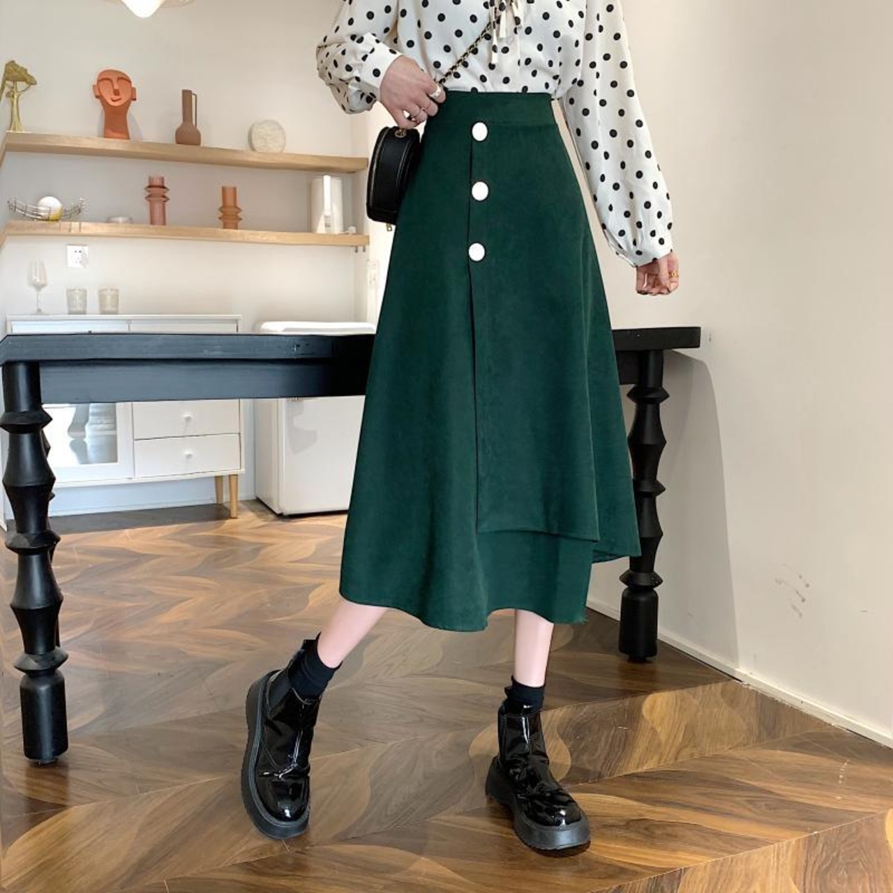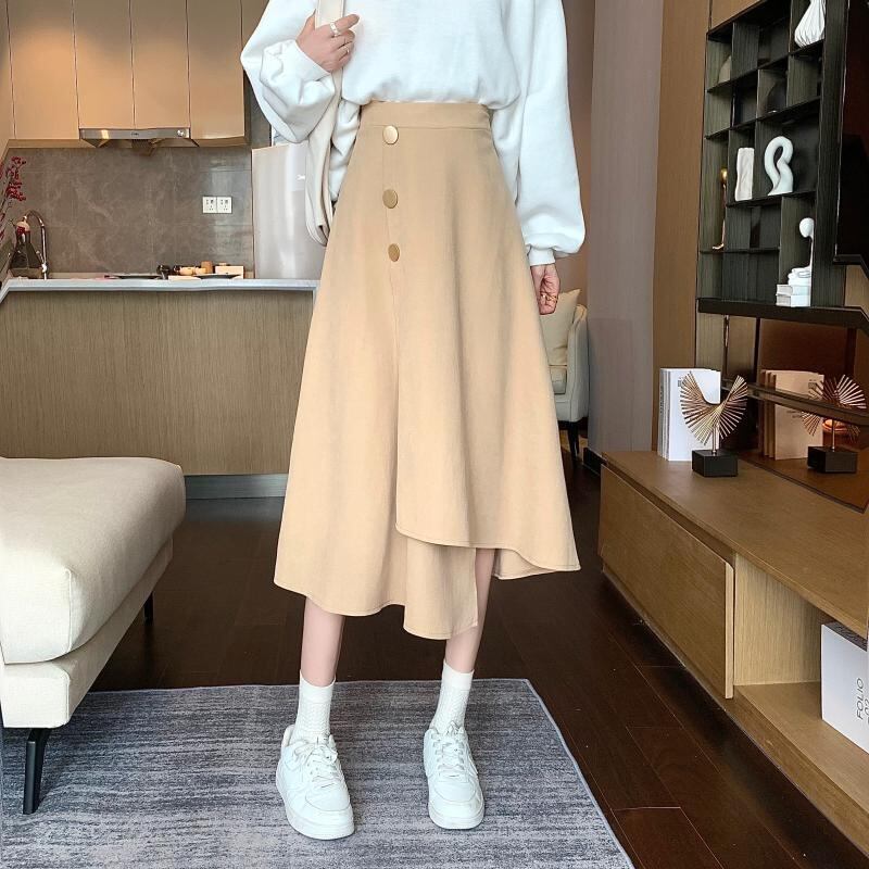 韓国ファッションNEWハイウェストウェストスカート スプリング秋物薄手ルーズAライン 春物 オータム スタイル ウエスト ミドル丈 コーデ Marchs56144724706