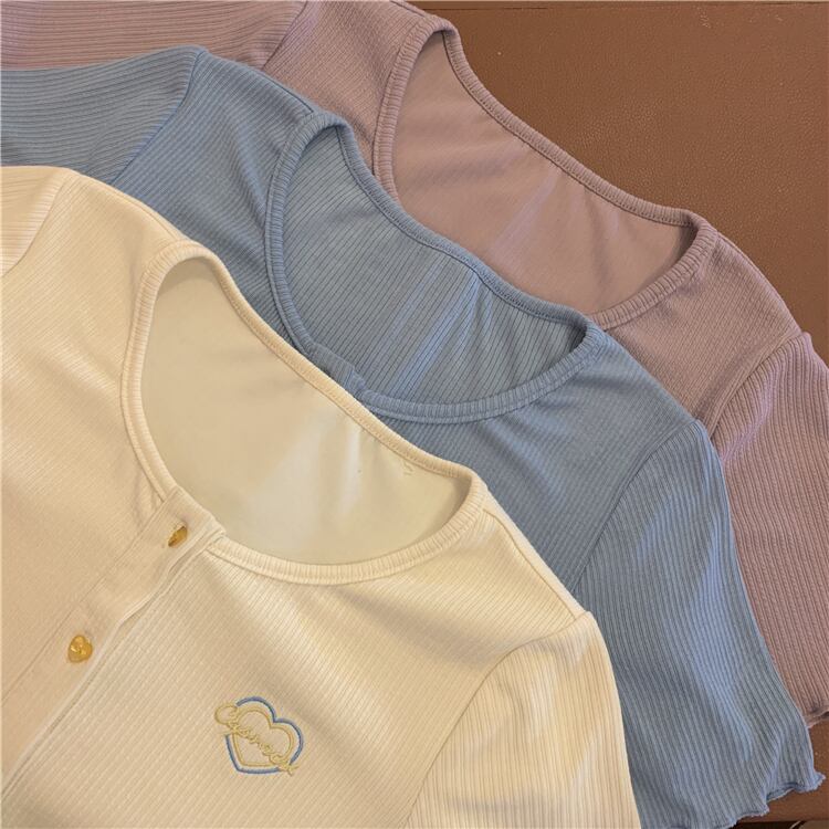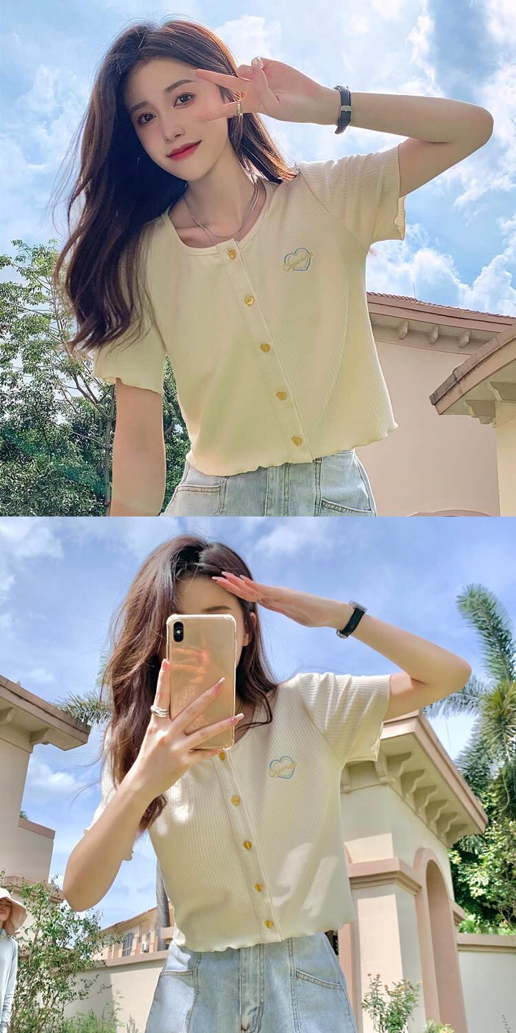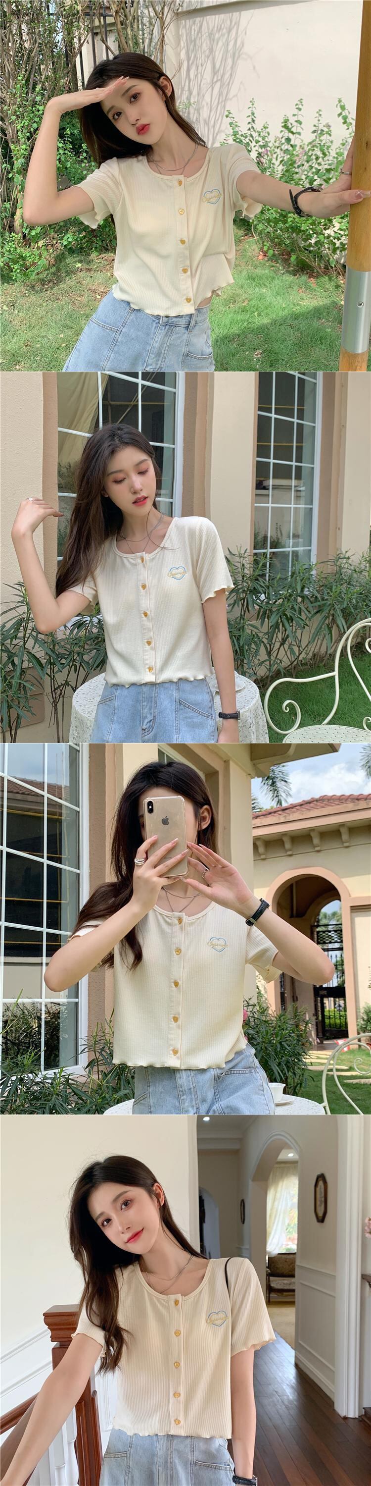 刺繍ショートTシャツ夏服ニットカーディガン薄手ハイウェストウェストトップス NEW 夏物 ウエスト コーデ Marchs46950858625