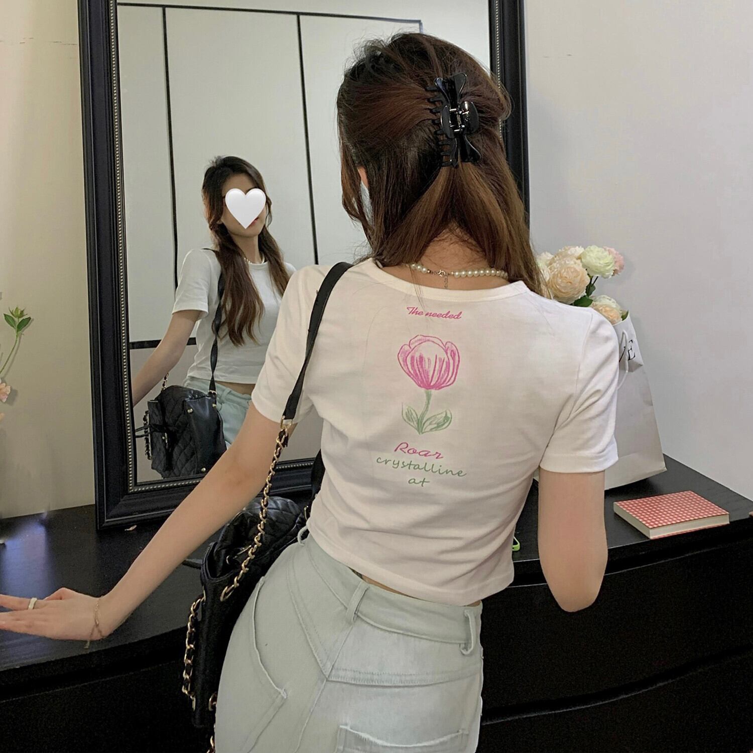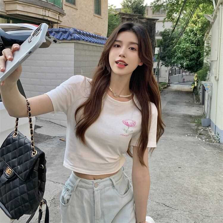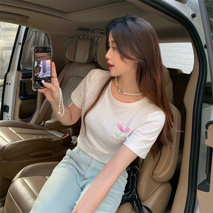 ショートトップス 夏服バックプリントTシャツ 半袖 ハーフスリーブ 大人ガーリー スウィート キュート カジュアル 夏物 コーデ Marchs65547939723