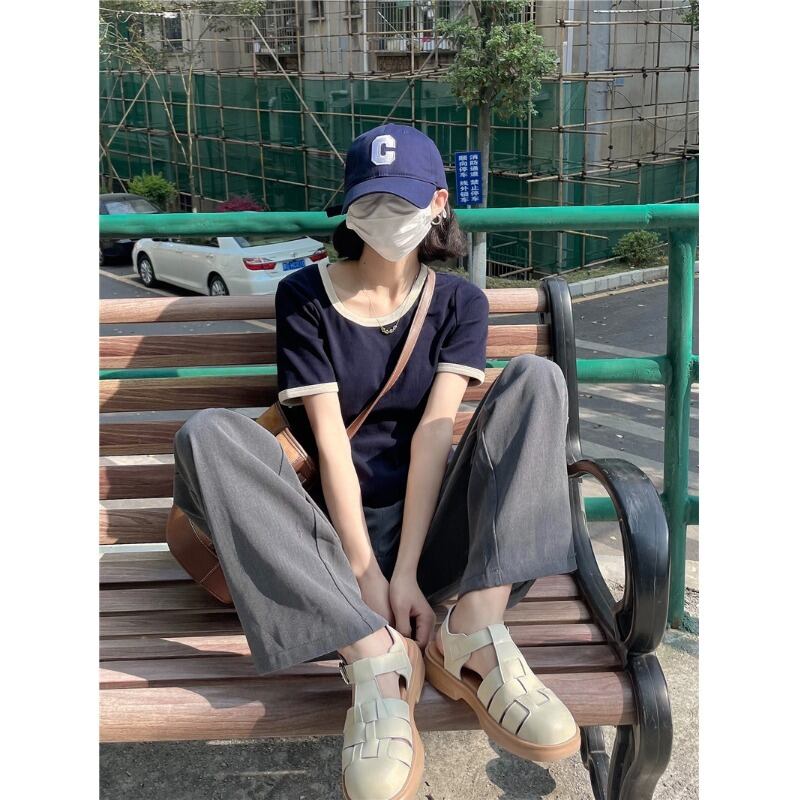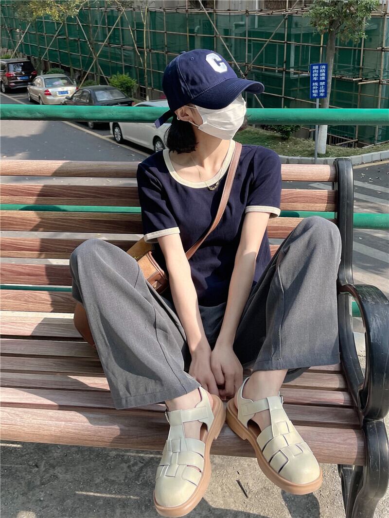 スタンダードラウンドネックTシャツレディース夏服トップス コットン レトロ 夏物 Oネック コーデ Marchs33422488337