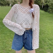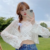 ショートブラウス シャツ薄手ニットルーズプルオーバー レース夏服トップス 大人ガーリー スウィート キュート カジュアル 夏物 コーデ Marchs15968489646