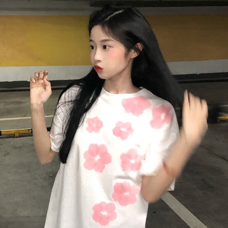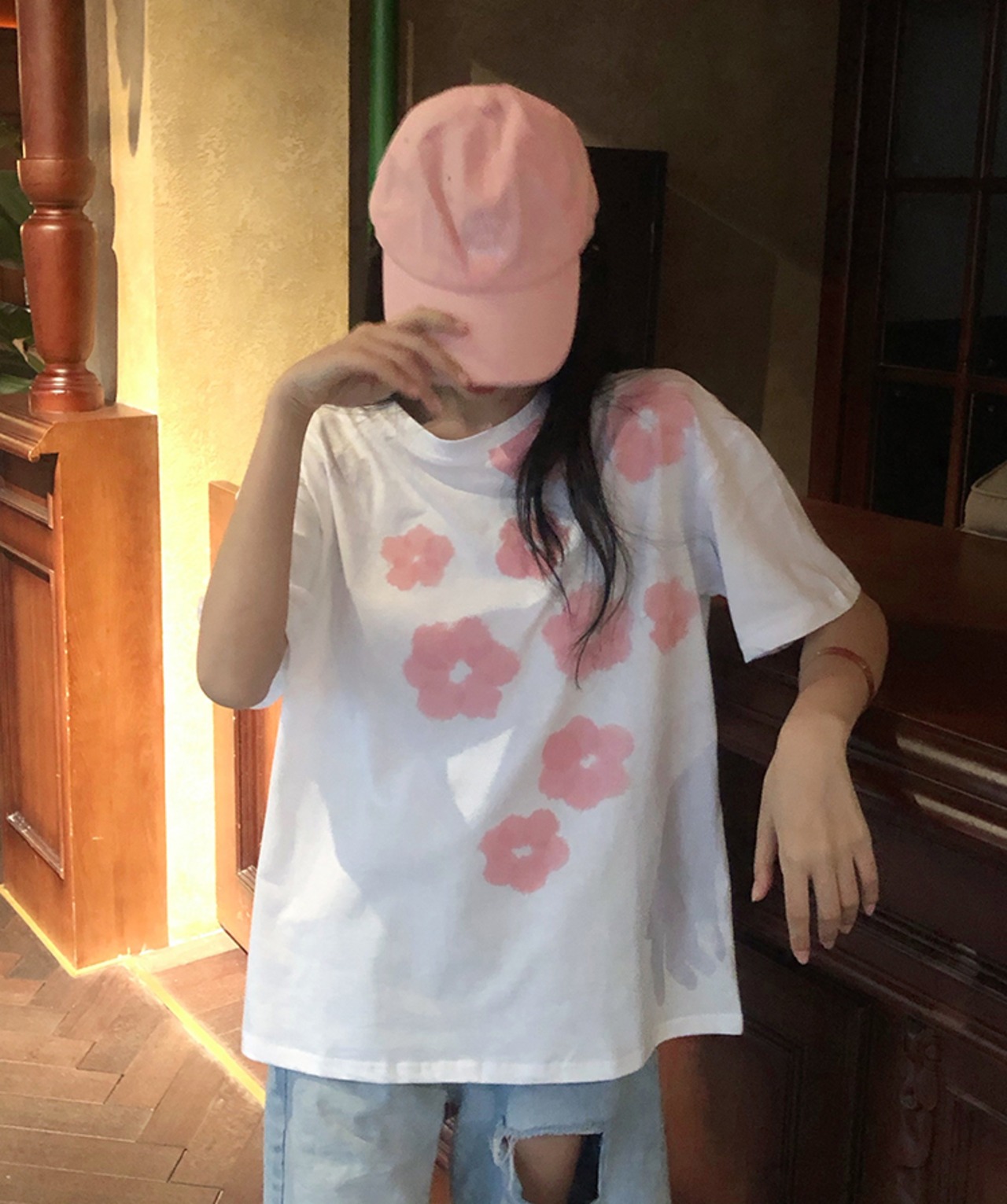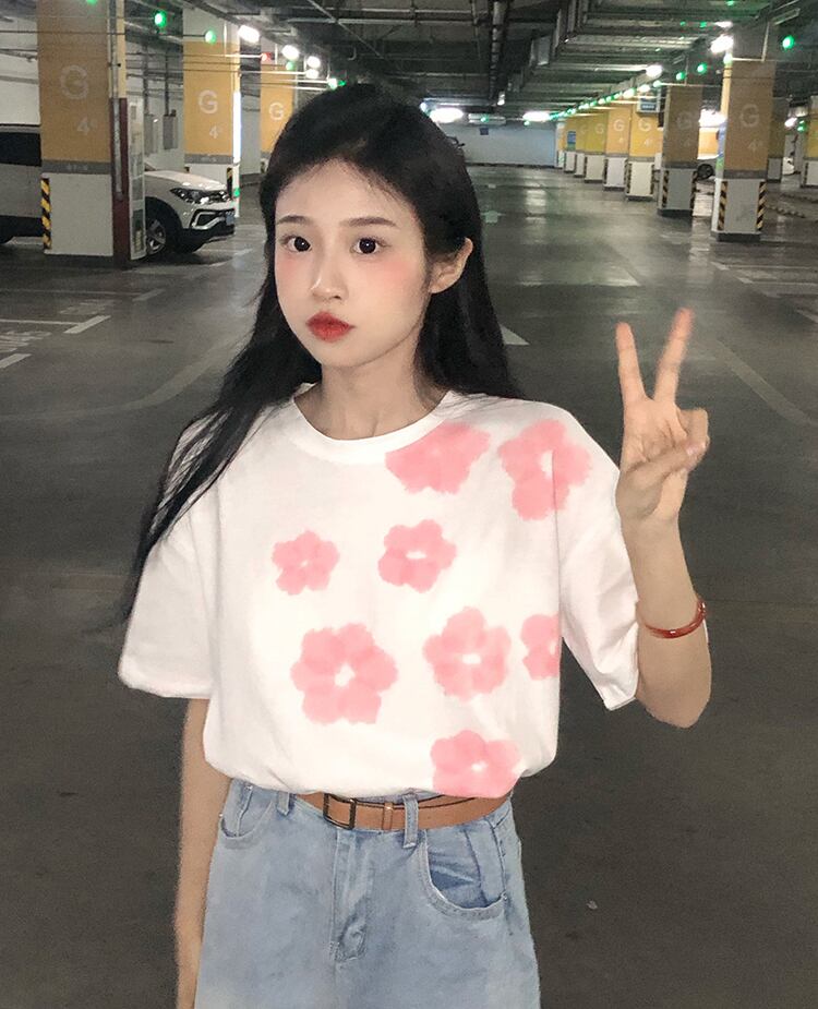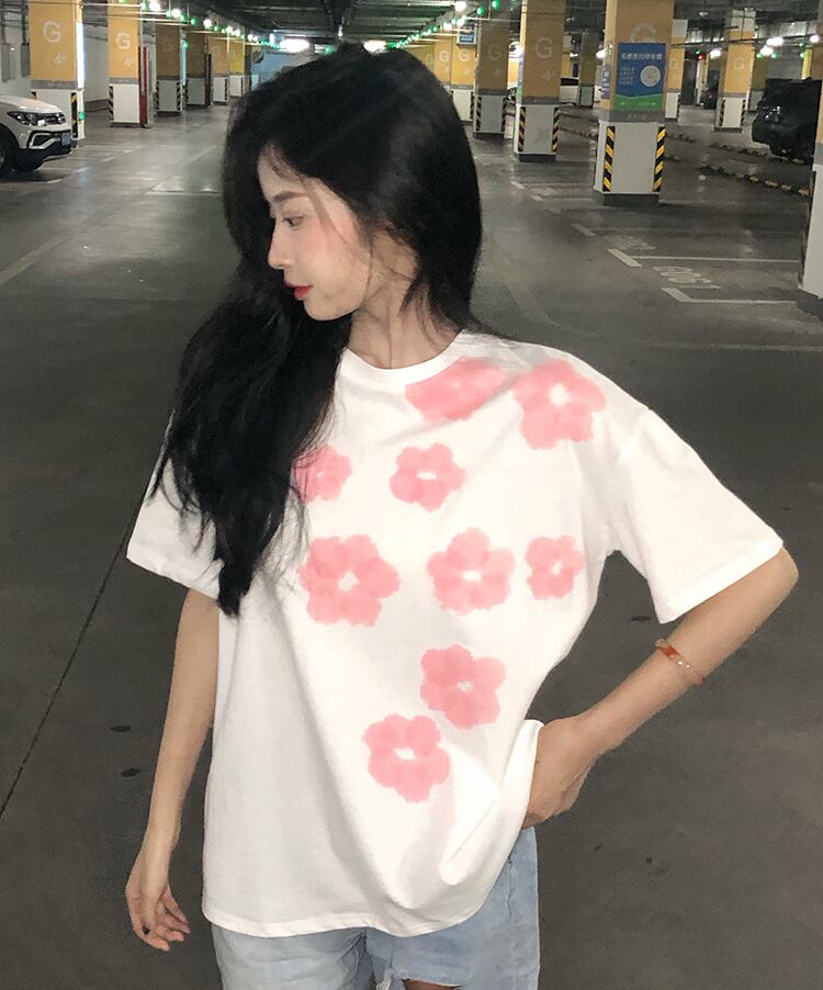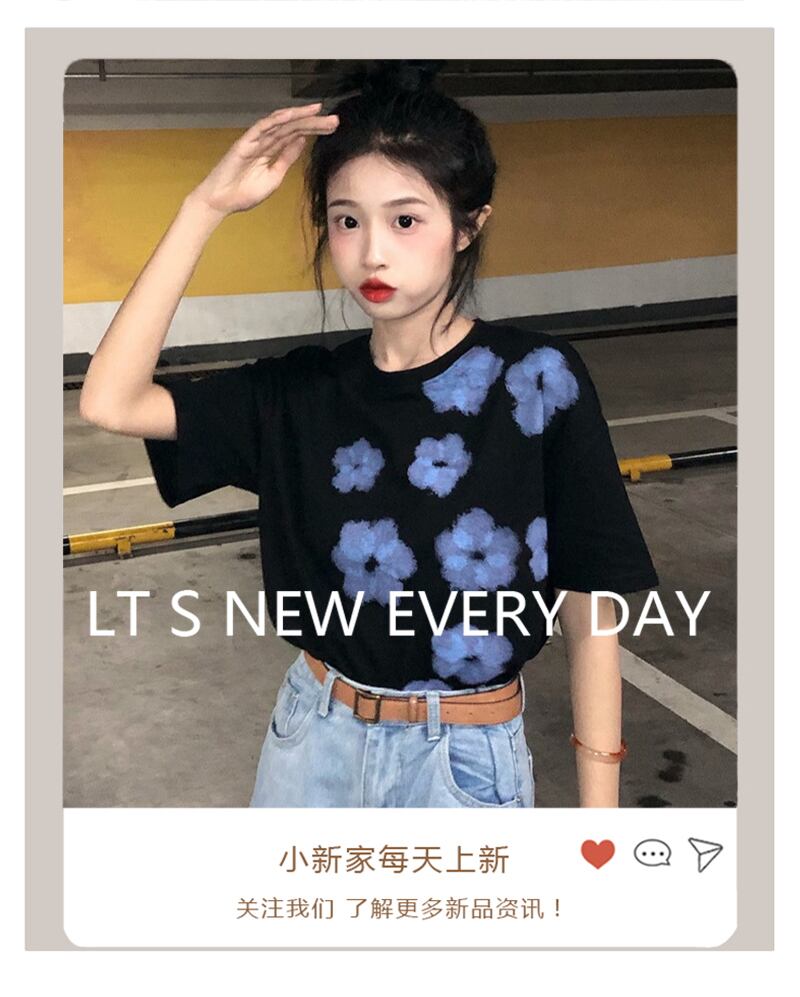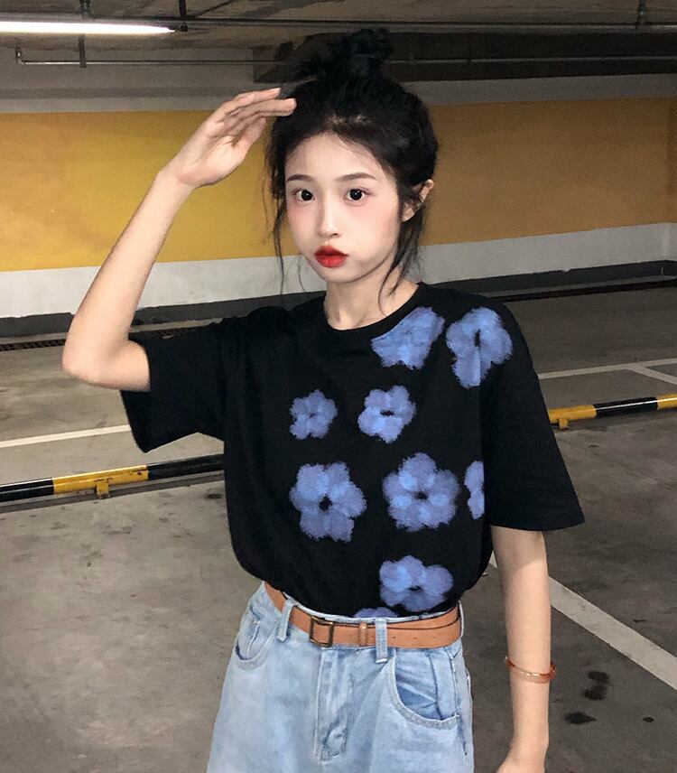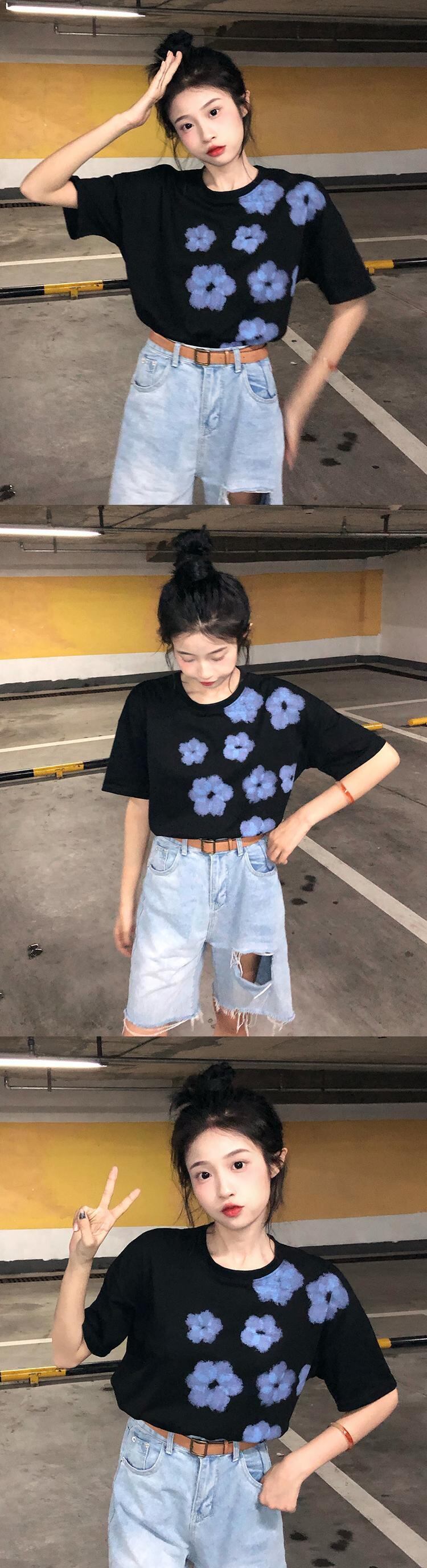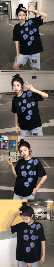 色:ホワイトピンクの花Tシャツ,黒のリトルブルーフラワーTシャツ