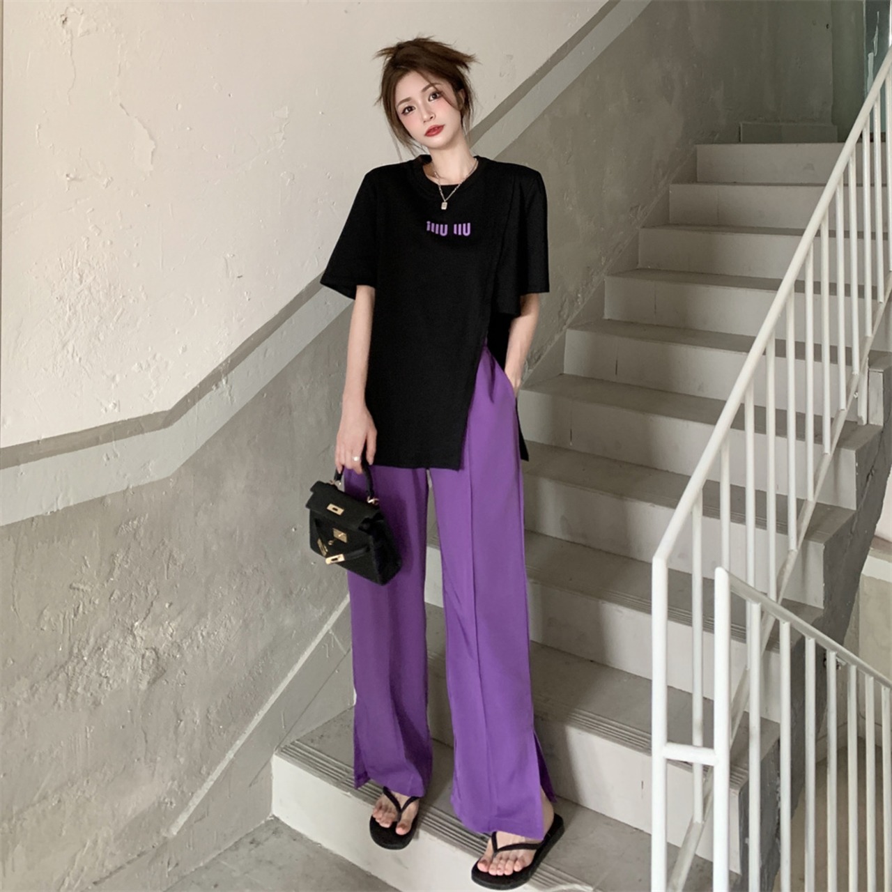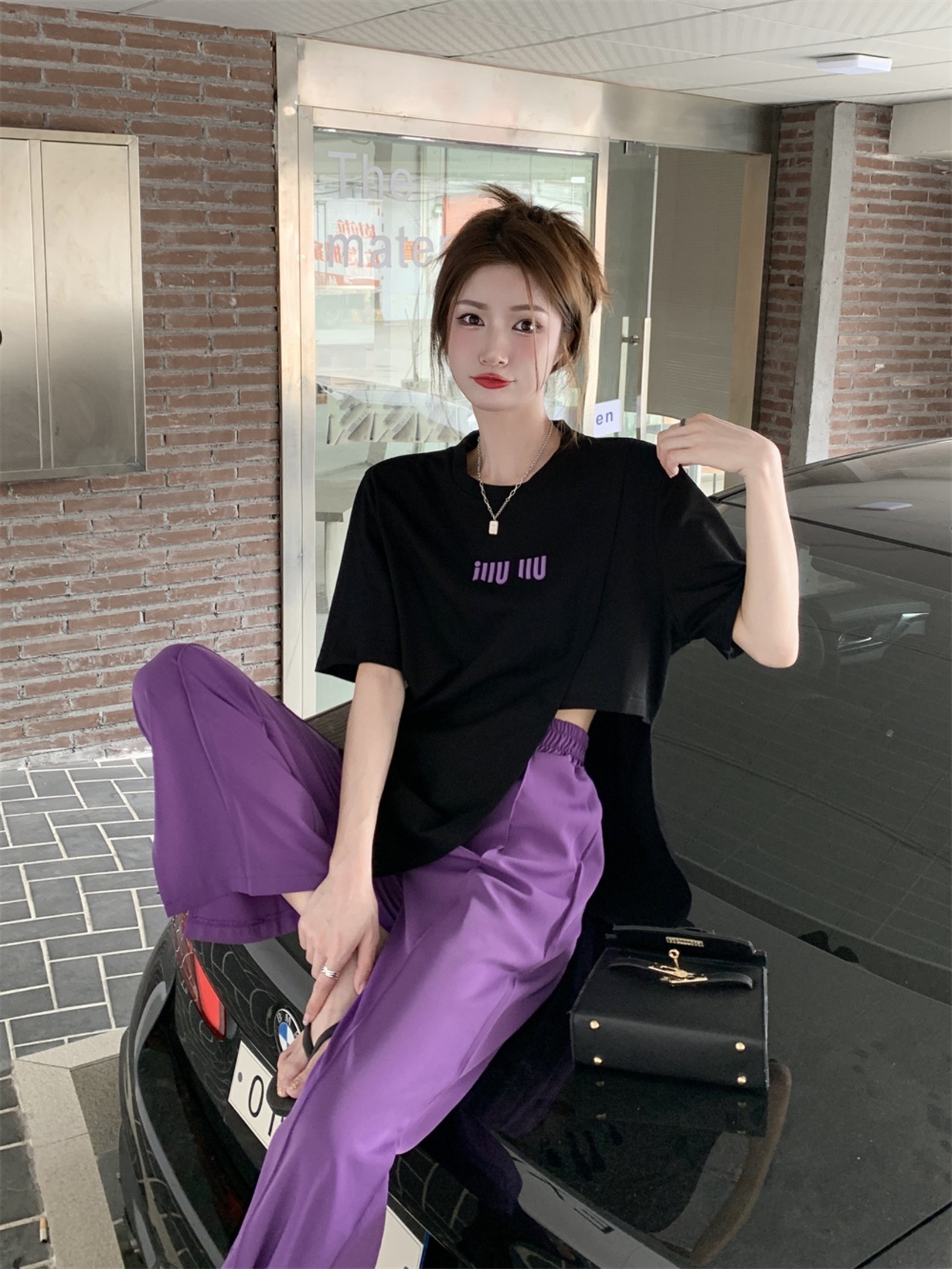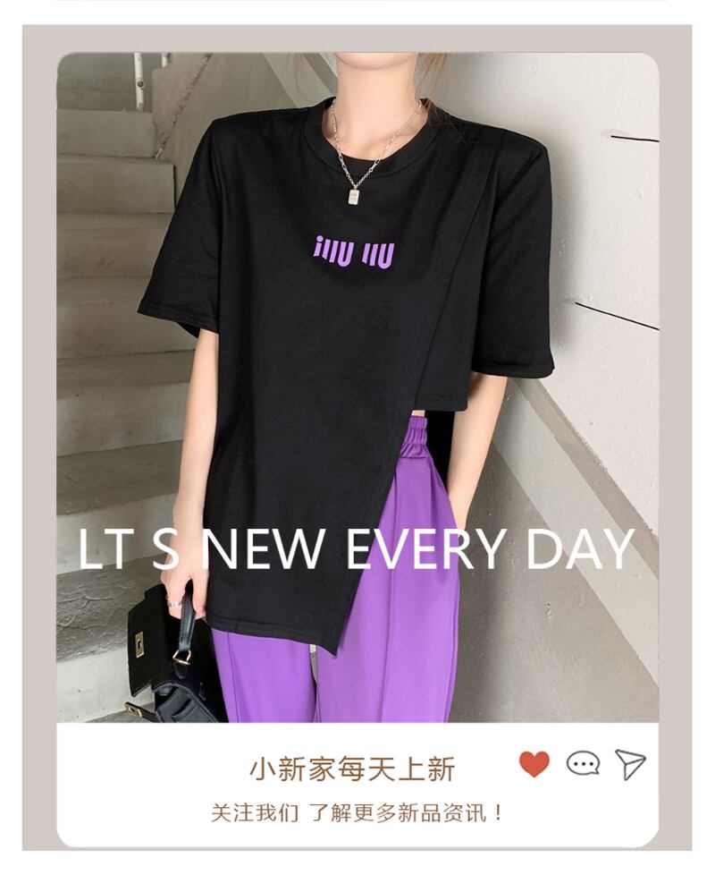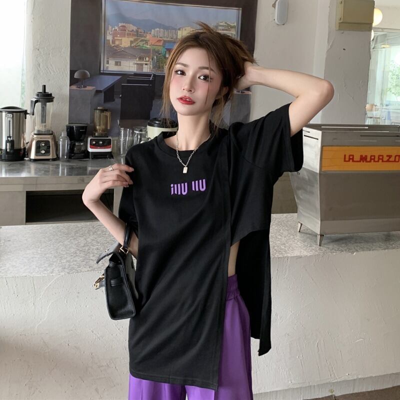 ウェストブラックTシャツ夏服ルーズトップス 夏物 ウエスト ミドル丈 コーデ Marchs5875616419